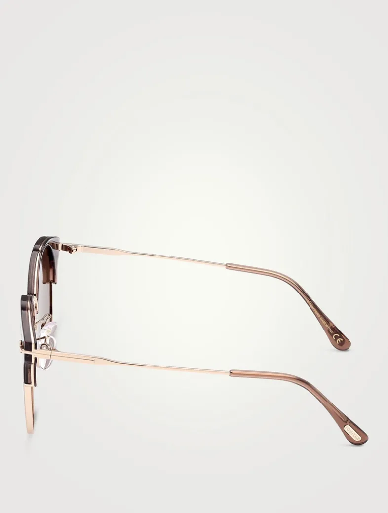 Combining an acetate topline with a metal frame, these vintage-inspired sunglasses are finished with signature T embellishment. Universal fit with a deeper nose bridge and wider temples.