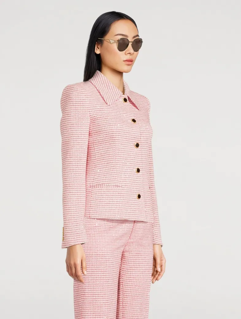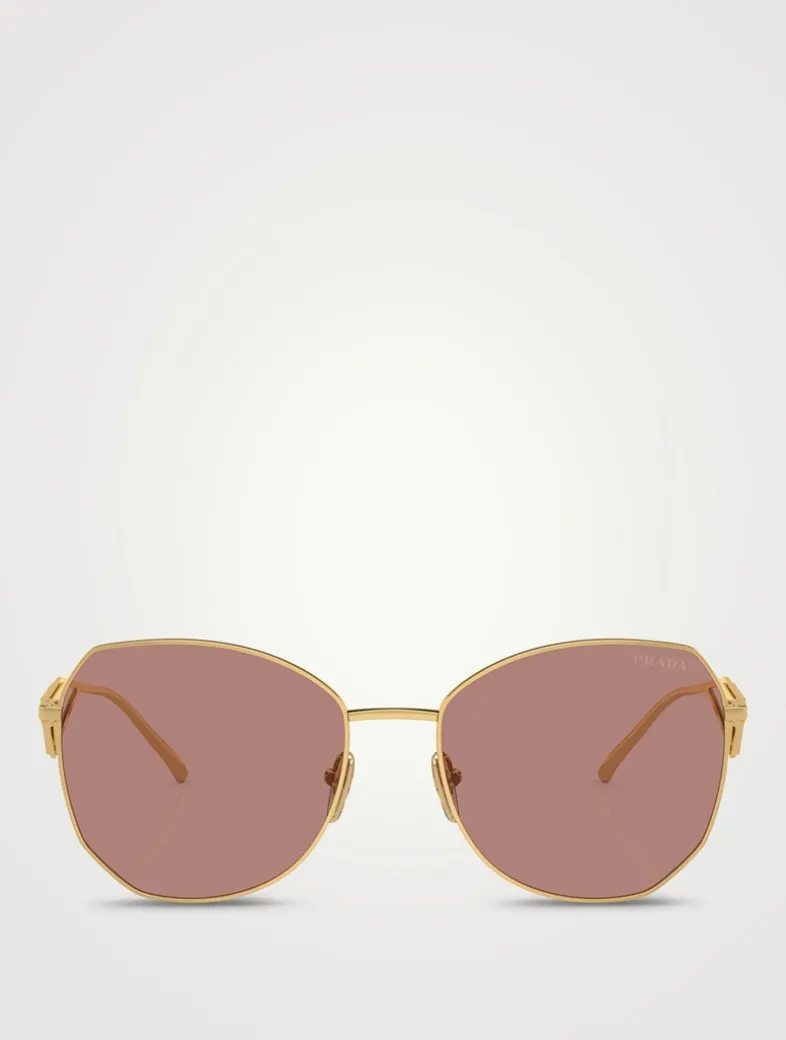 Crafted with a polished metal frame, these rounded sunglasses are accented with classic PRADA triangle logos at the temples. This style is RX-able.