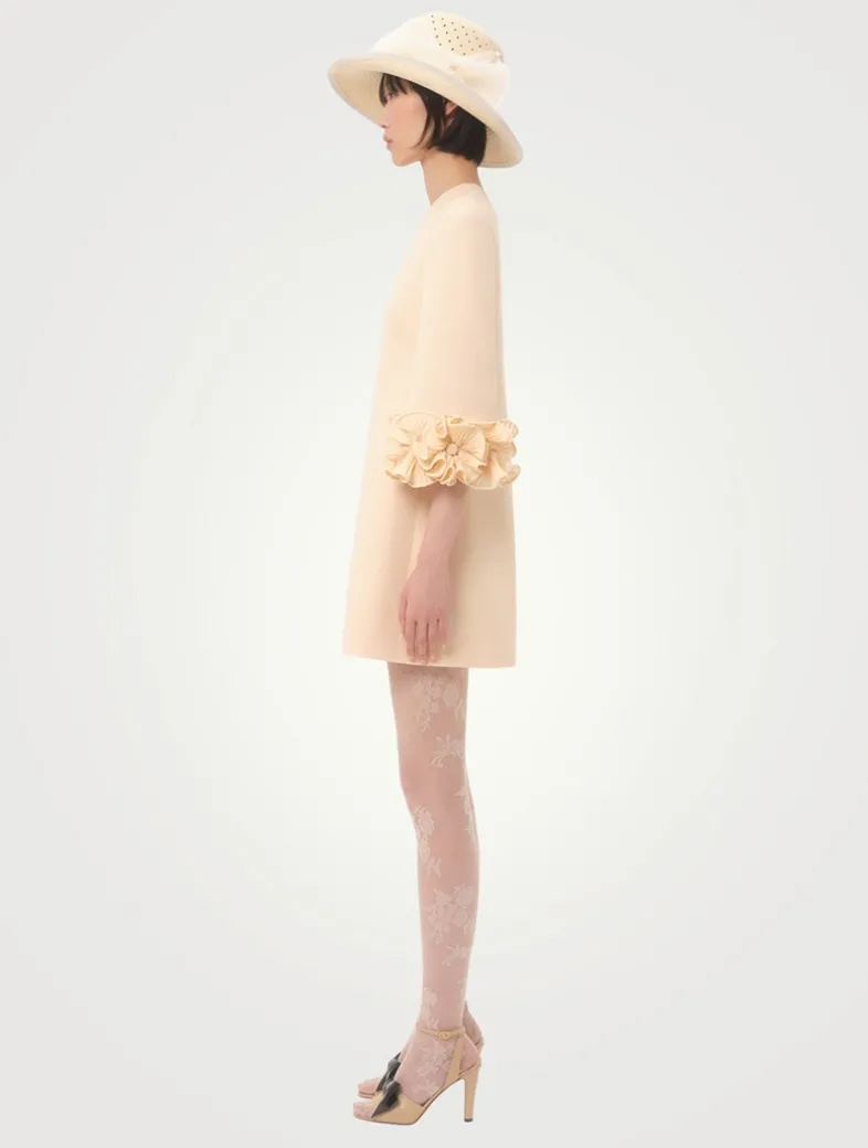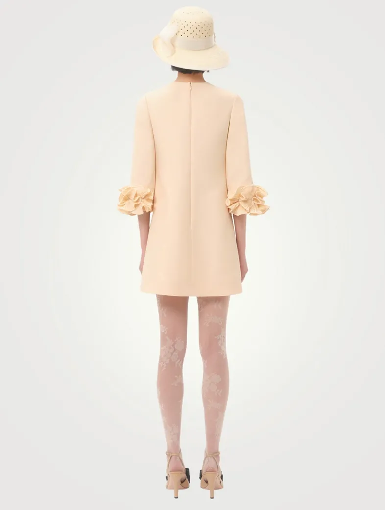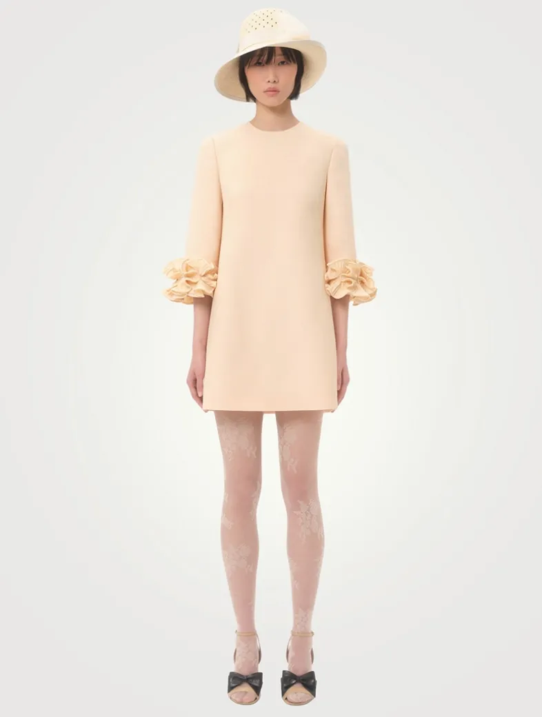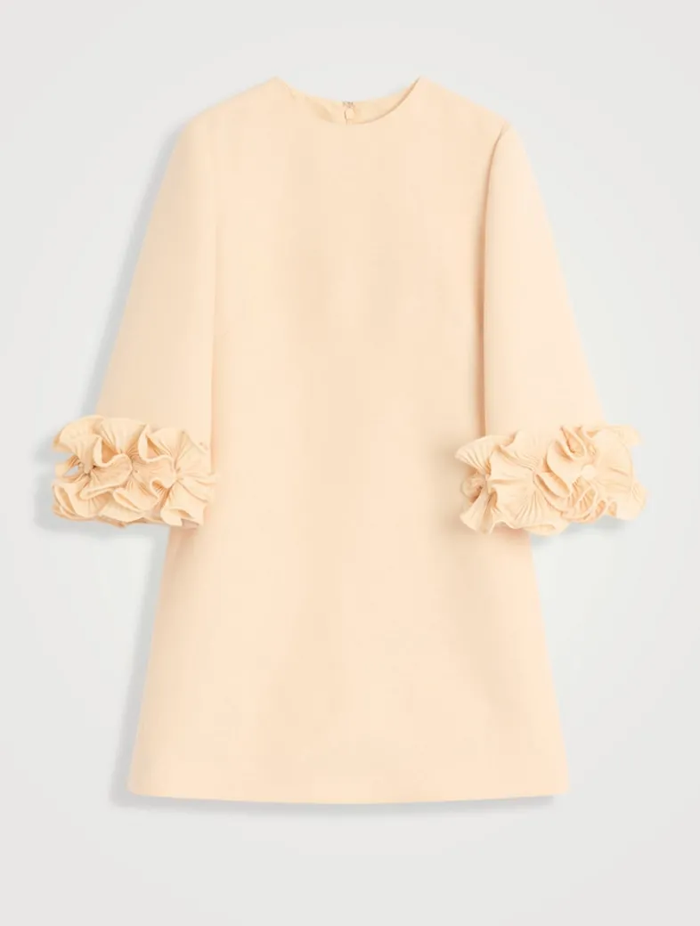 Crafted from Valentino’s signature crêpe couture fabric, this A-line mini is adorned with ruffled trim at the cuffs, enhancing the playful femininity of this dress.