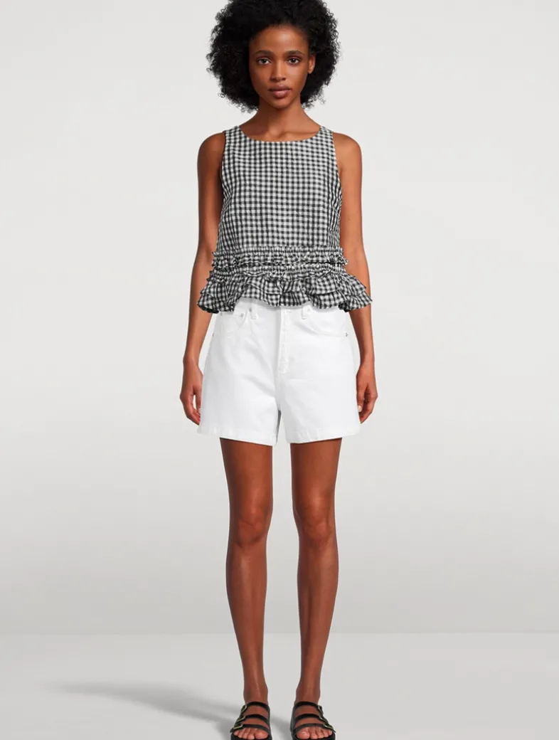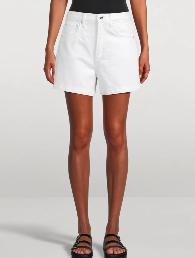 Featuring an ultra flattering high-rise waist, a relaxed A-line fit, and medium length, these shorts are crafted from rigid non-stretch denim designed to hold its silhouette.