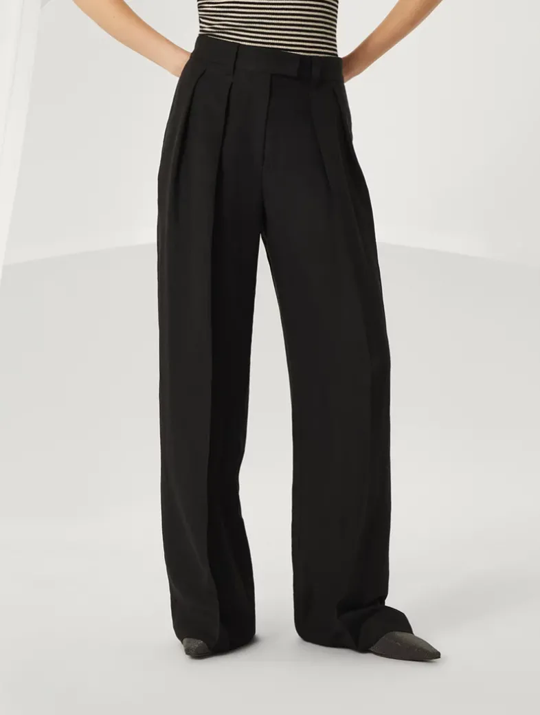 Viscose and linen fluid twill sartorial wide trousers