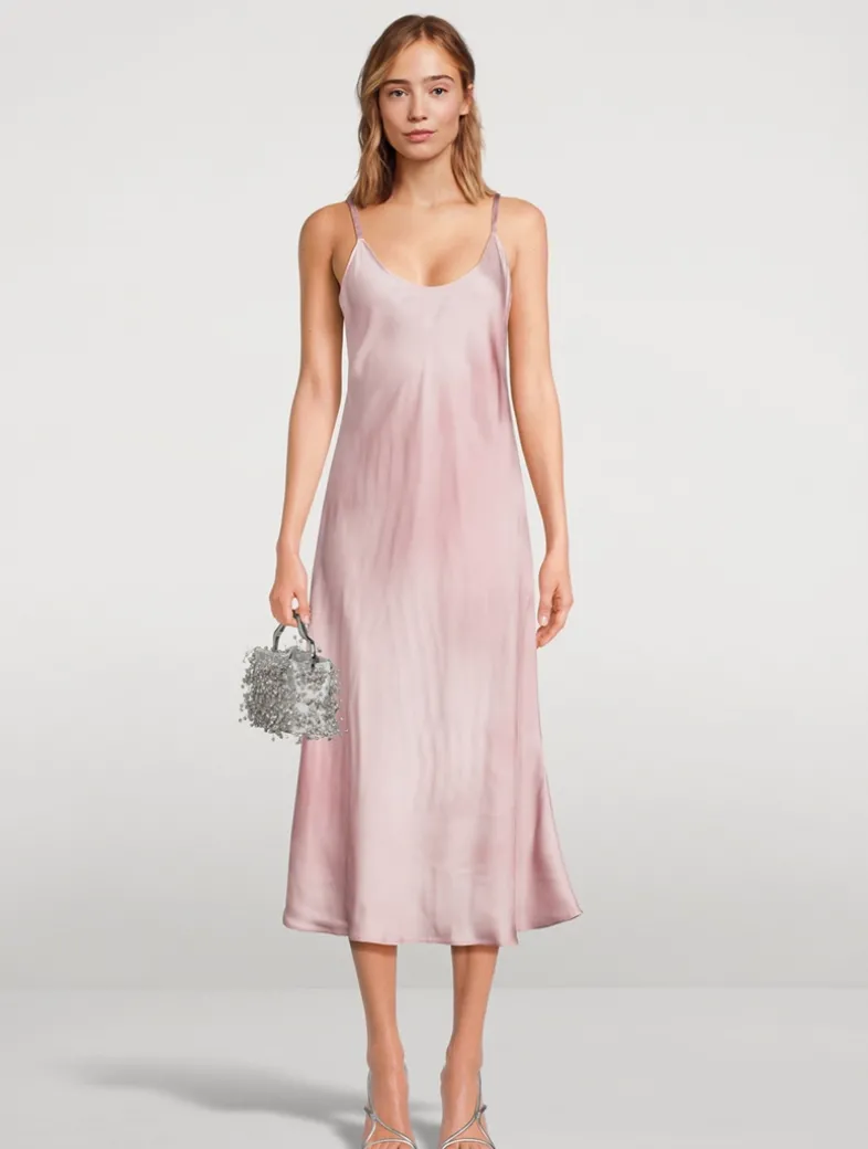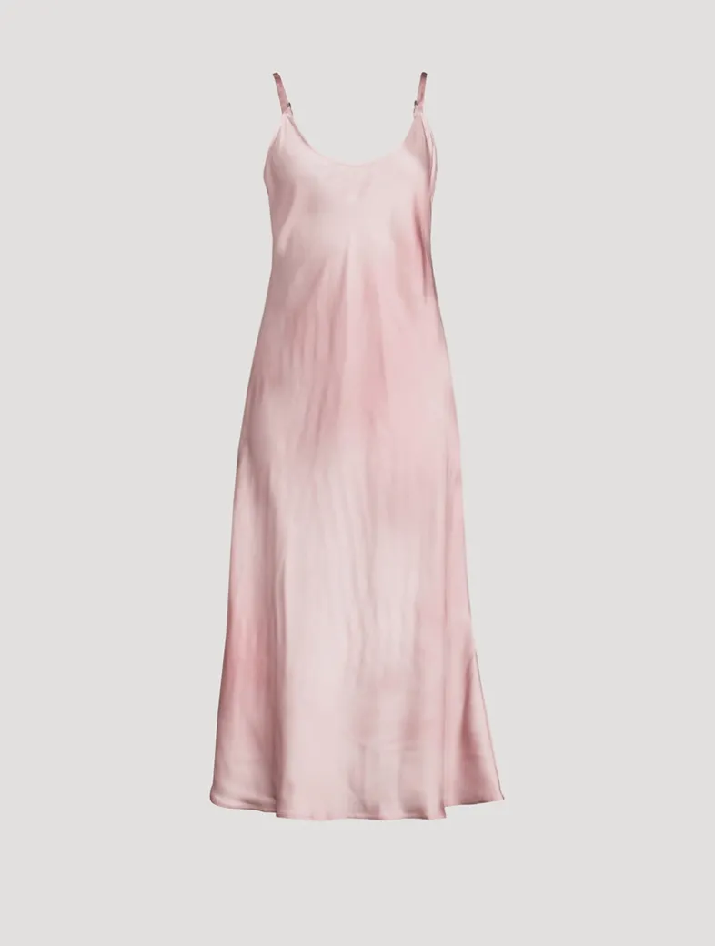 This slinky slip dress is crafted from fluid satin with a subtle printed effect. It is detailed with adjustable shoulder straps with buckled hardware. Cut to a regular fit and a mid-calf length.
