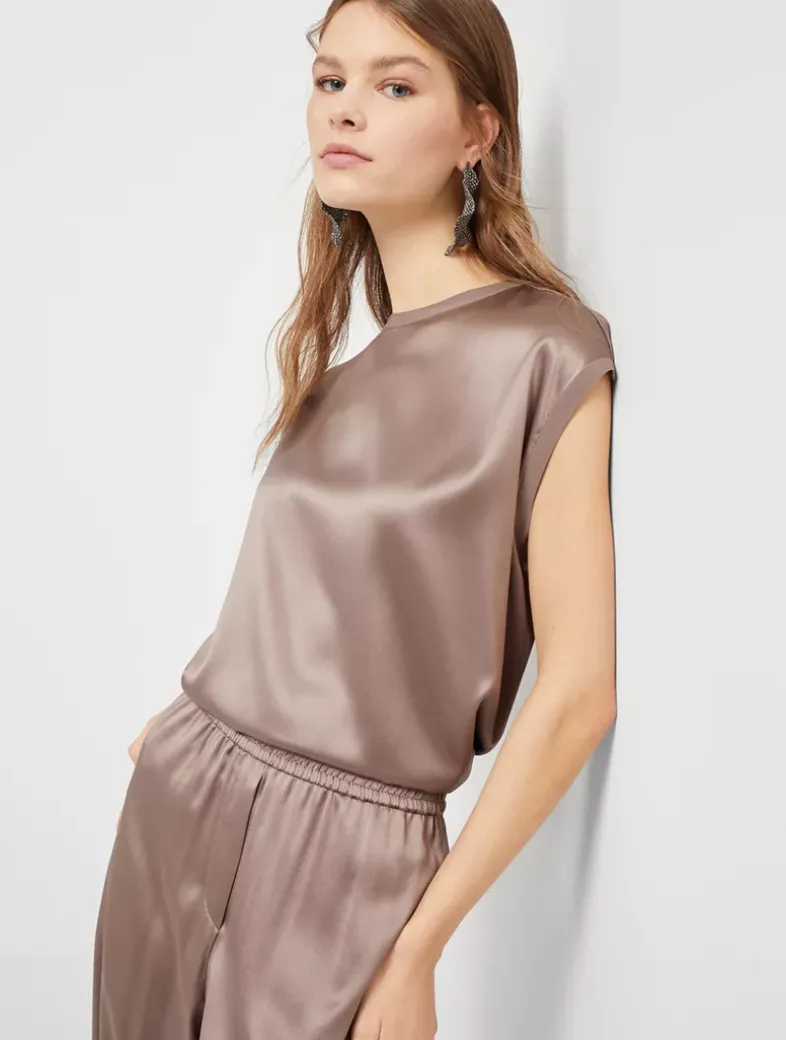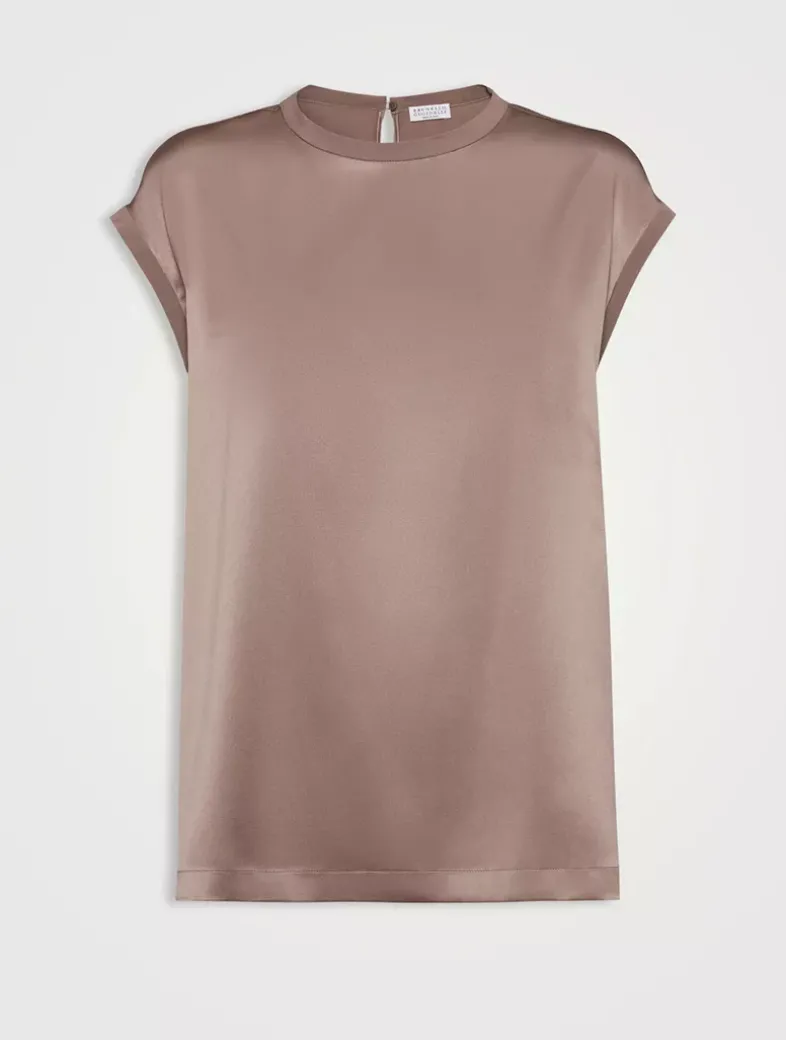 Stretch silk satin T-shirt with monili