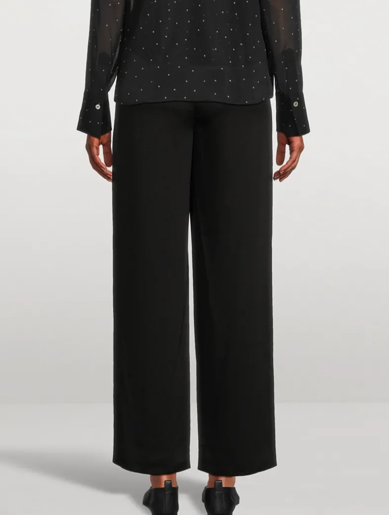Tailored with a high-rise waist and pleated legs, this menswear-inspired trouser is softened in lustrous, fluid satin.