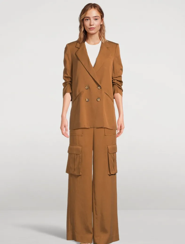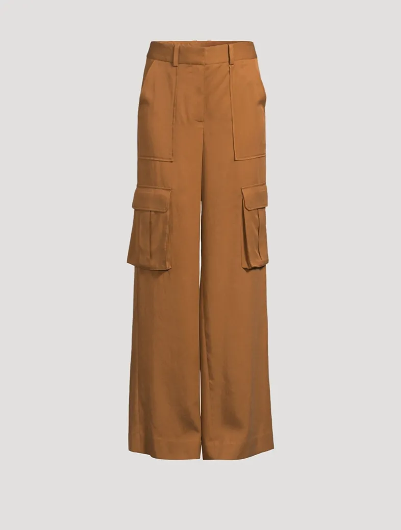 Made from a lightweight suiting fabric, this high-rise, wide-leg silhouette boasts both cargo and patch pockets for supreme versatility—and on-trend detail.