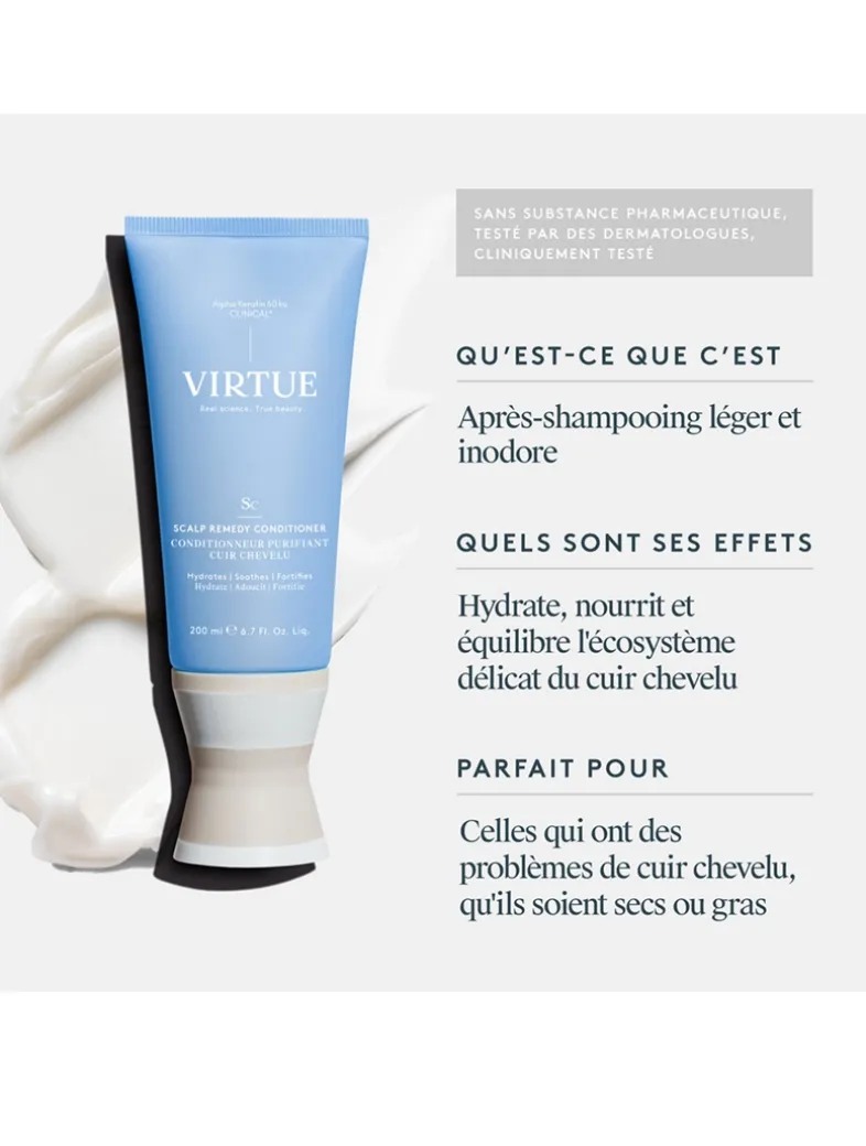 Virtue® Scalp Remedy Conditioner hydrates and nourishes from roots to ends while balancing the scalp’s delicate ecosystem, so hair grows stronger and healthier.