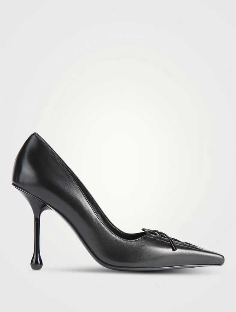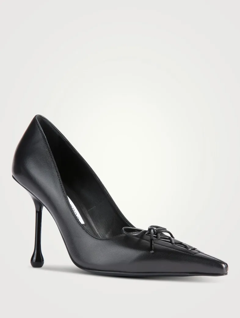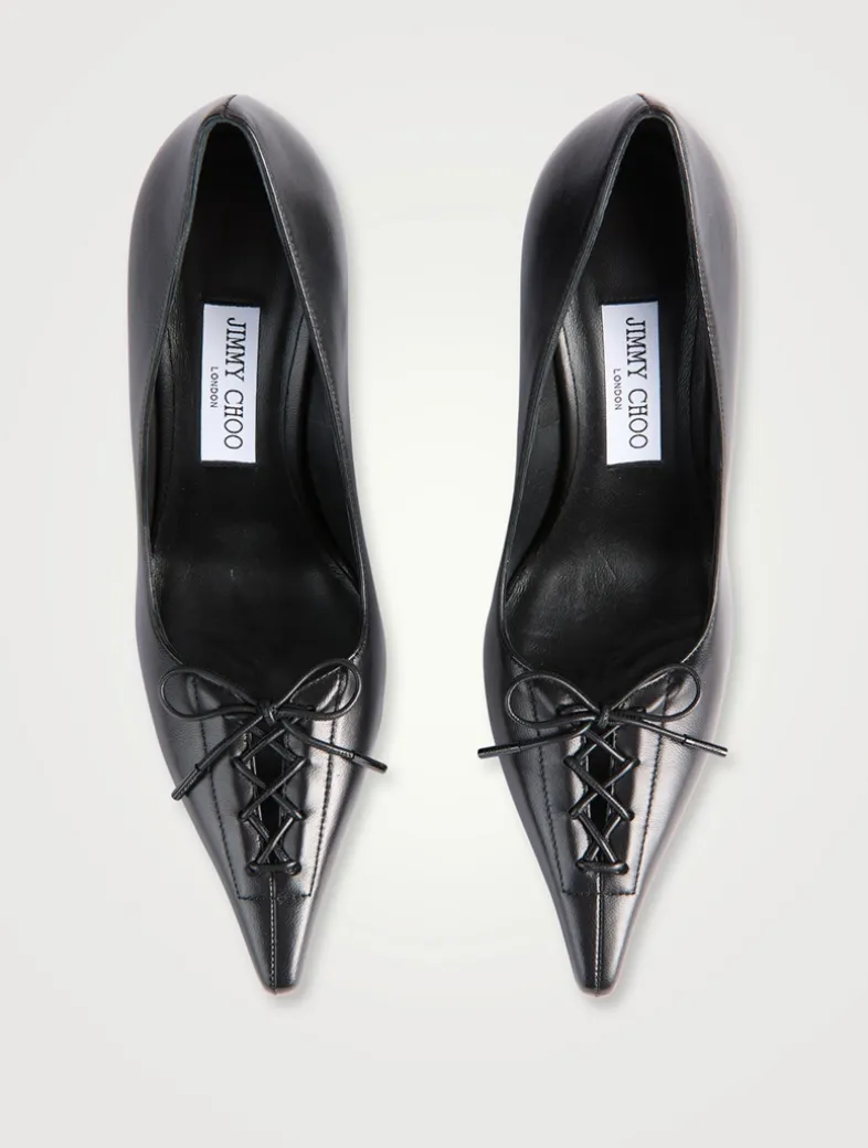 The Scarlett is elevated by Jimmy Choo’s signature drop heel. The corset detail on the upper is carefully crafted by threading leather lace by hand, which is secured with an invisible stitch.