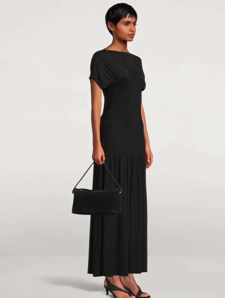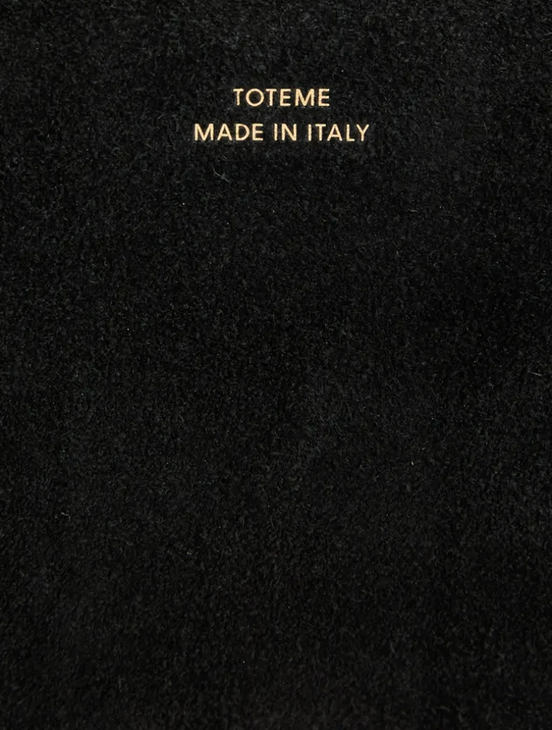 A statement TOTEME clutch is made in Italy from supple suede with gold-tone metal accents, including a slide clasp inspired by the Belted bucket bag. Scoop it from the underside to keep it close to the body.