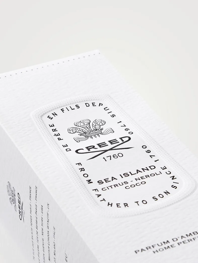 Inspired by the memories of maritime adventures enjoyed by Olivier Creed and his young family, Sea Island exudes a misty freshness. A blend of citrus and neroli are layered over a soft coconut note, resulting in a rejuvenating home perfume that elevates the mood in any room.
