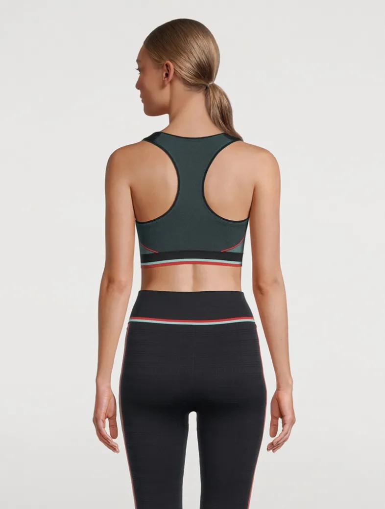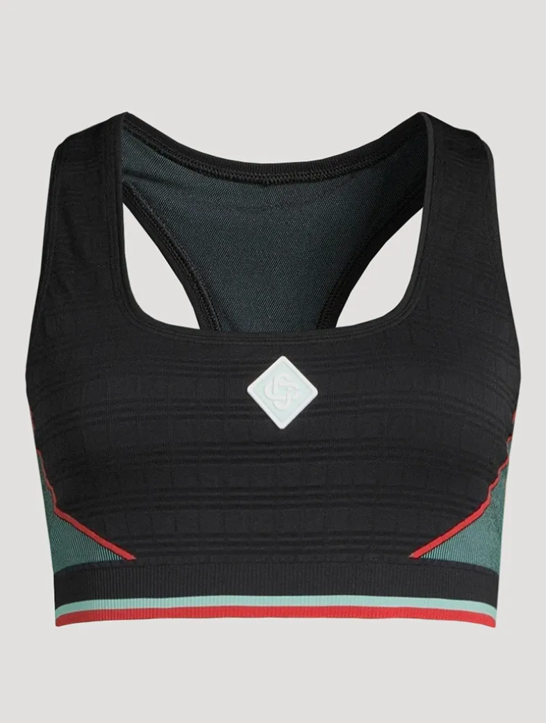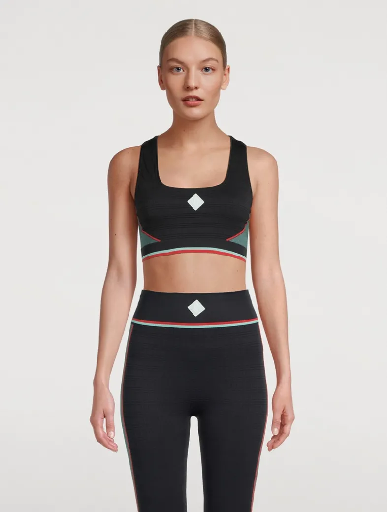 The seamless sports bra is a sportswear-inspired design featuring the house’s signature diamond monogram at its centre. This piece is crafted from a seamless rib stretch fabric featuring an elasticated band, completed with straps and a scoop neckline.