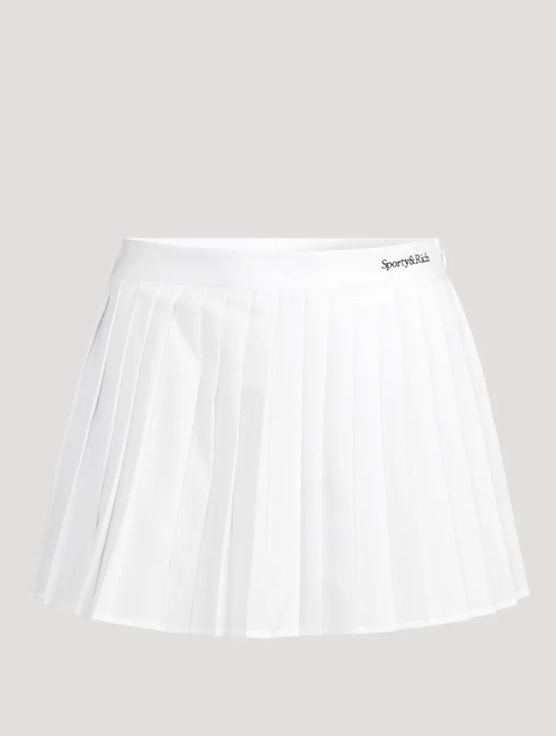 Made in Portugal of flat pleated cotton, this super short pleated skirt is a high-waisted style with a zipper hidden on the side. To keep the pleats looking their best, Sporty & Rich recommend pressing and reshaping them after dry cleaning.