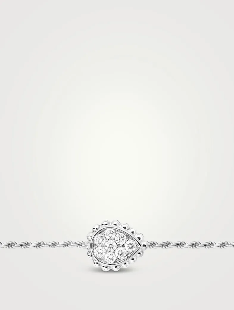 A protective spirit and symbol of eternity, the Serpent Bohème collection presents the iconic Boucheron serpent. Crafted with a twisted chain, this bracelet features a diamond-dotted snake head motif crowned with the brand’s signature bead detail.