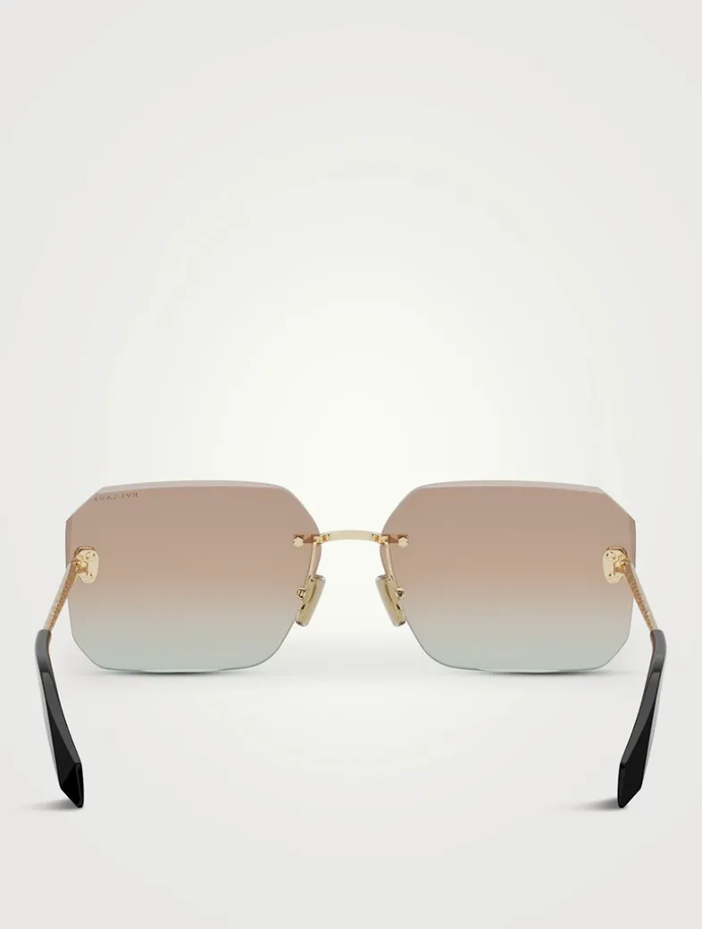 These rimless rectangular frames with ombré lenses are embellished with sinuous and sleek Serpenti temples, for signature Bvlgari style inspired by the iconic Serpenti jewels.