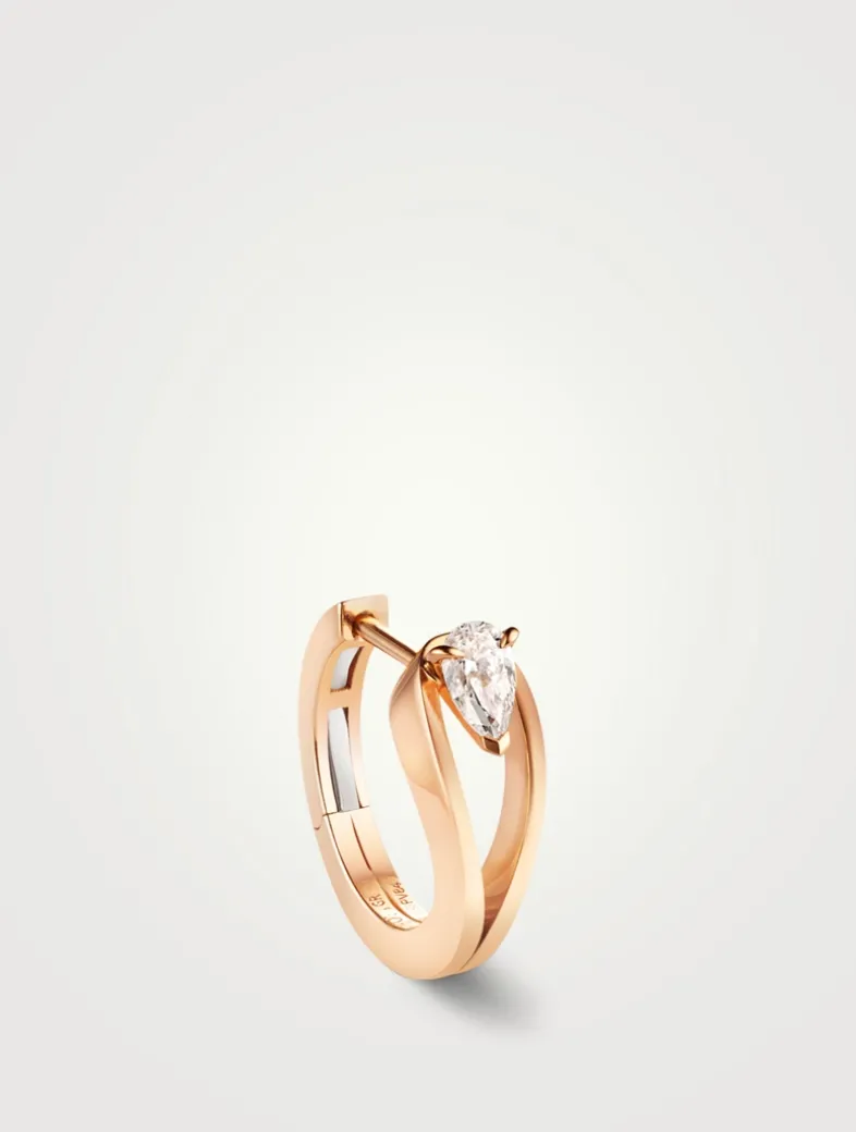 Crafted in 18k rose gold, this mini hoop earring is set with a single pear-cut diamond and pin fastening.