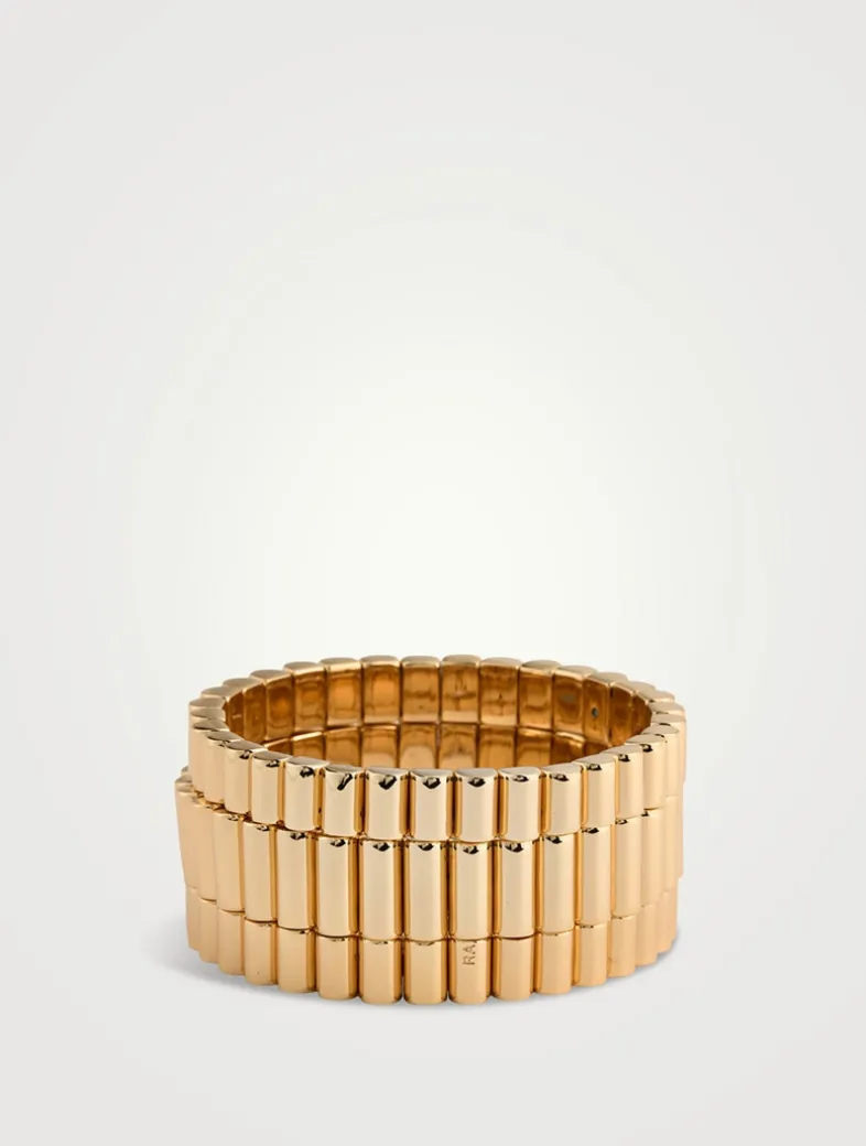 Enhanced with a gleaming gold-tone finish, this set of three stretch bracelet is made of ridged links.