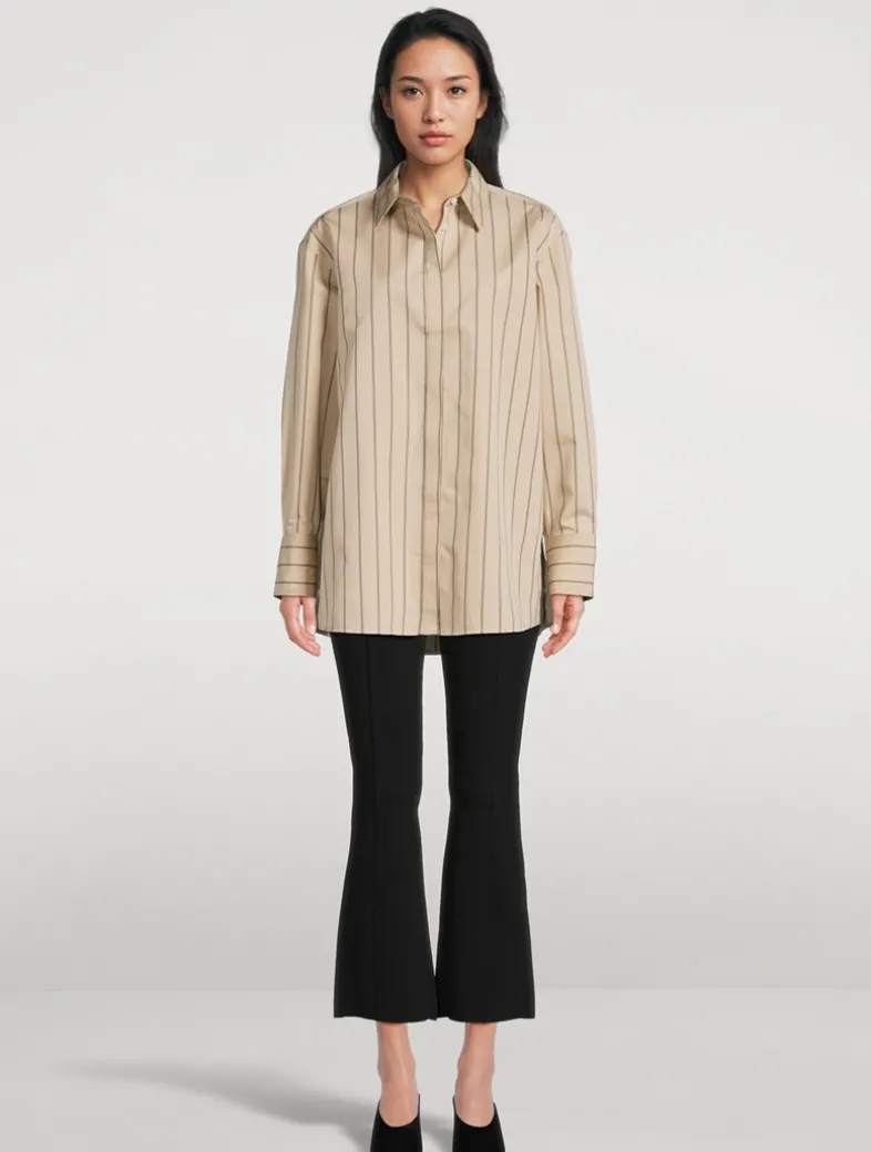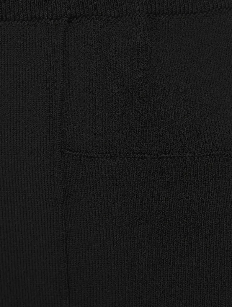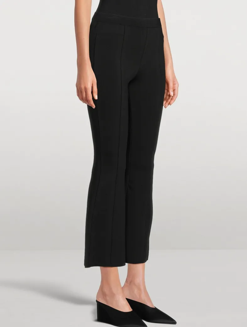 The Shaila pant is knit to a mid-rise silhouette with a subtly flared leg with an ankle-length crop.