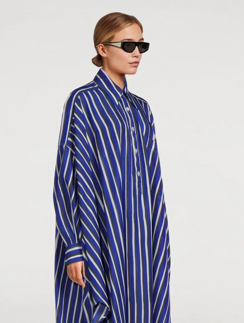 These sleek sunglasses feature three-layer temples with injected acetate and metal core wire evoking the brand’s iconic triangle motif.