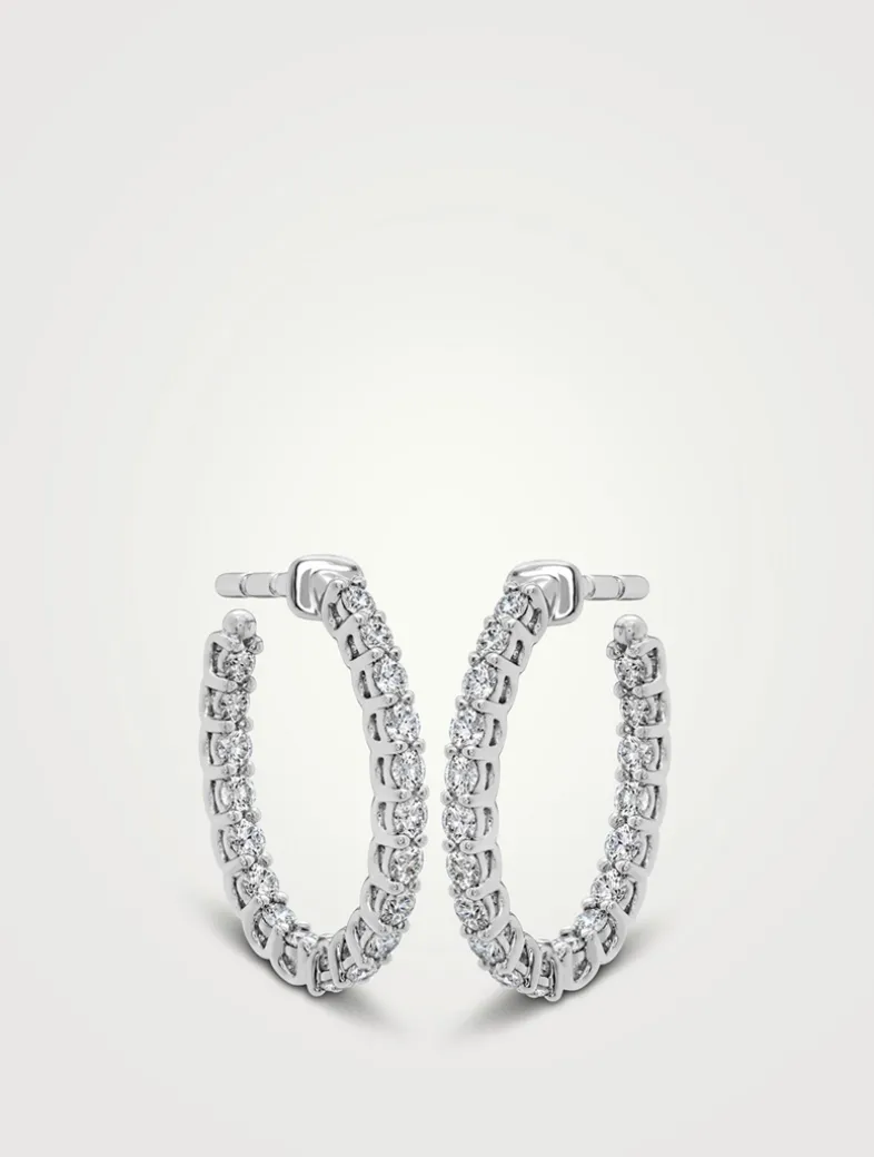 Signature 18K White Gold Oval Hoop Earrings With Diamonds