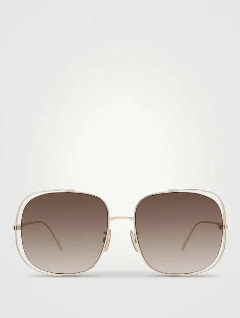 Constructed with a sleek metal frame, these oversized square sunglasses are designed with a floating lens effect.