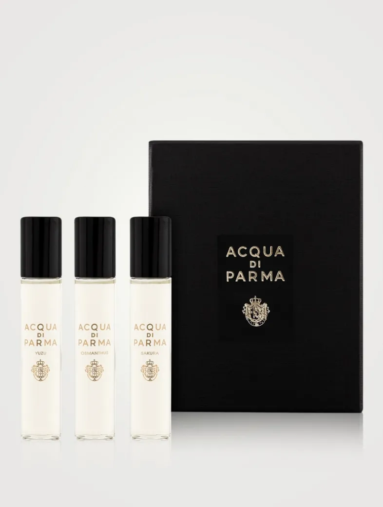 AQUA DI PARMA loves nature, rising with the sun, emerging from the soil, reaching for the sky. And loves to celebrate its treasures: the finest raw ingredients born from light. Discover Yuzu, Osmanthus and Sakura in a portable format.Fragrance Family