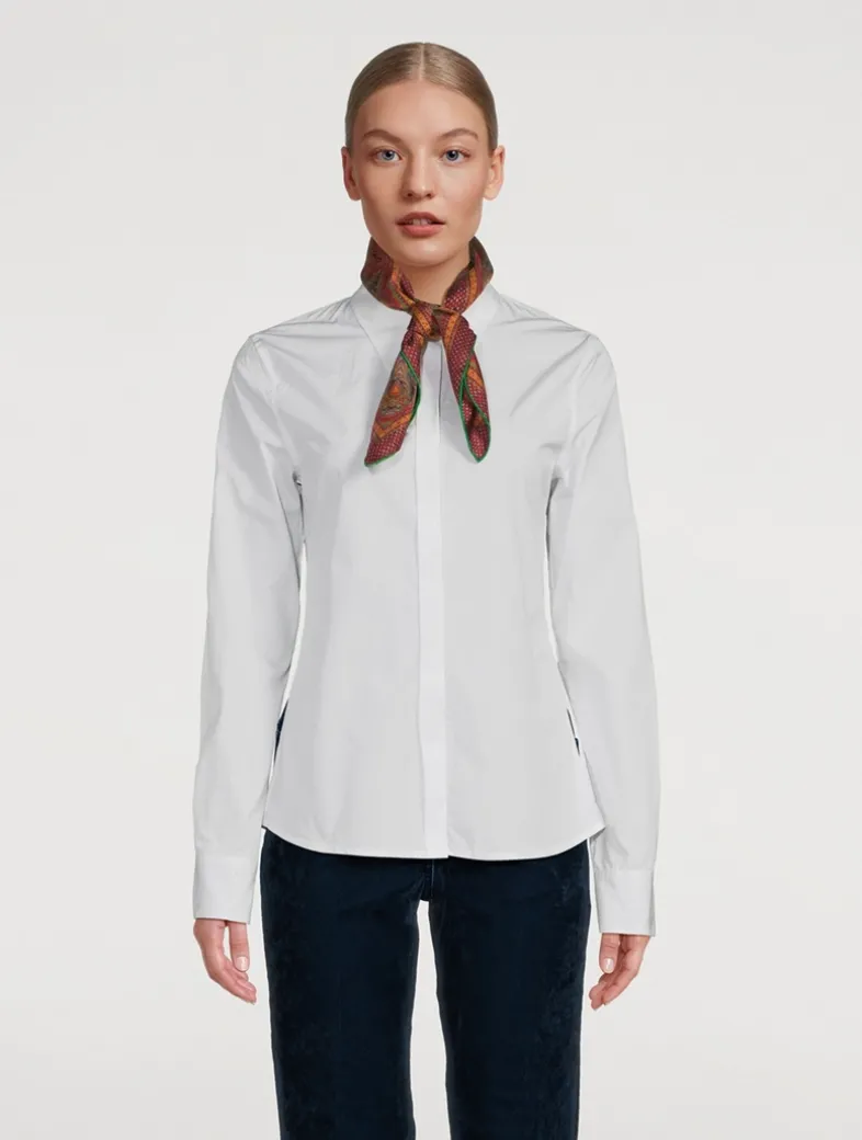 A versatile piece with multiple ways to wear, this printed silk scarf is expertly finished with hand-rolled edges.