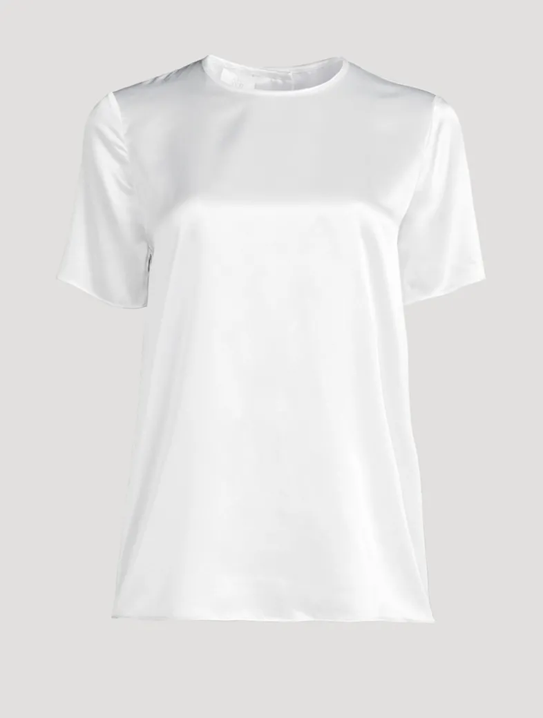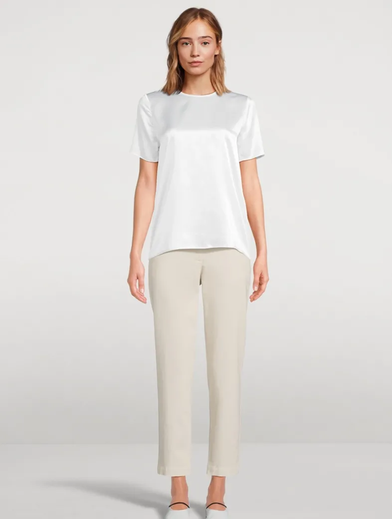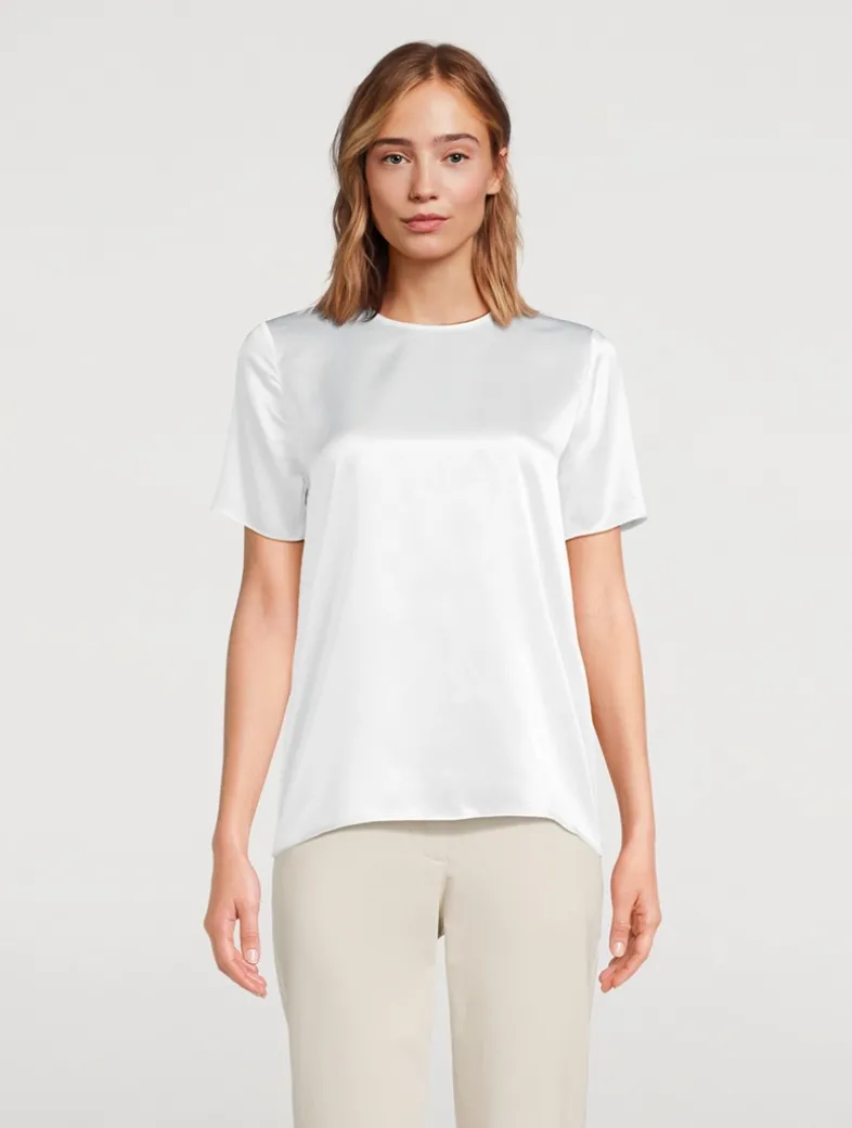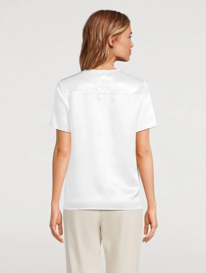 This double-layered silk blouse gets a dose of casual cool in a classic T-shirt cut. The simple design is finished with a hip-skimming length and a buttoned closure at the back.