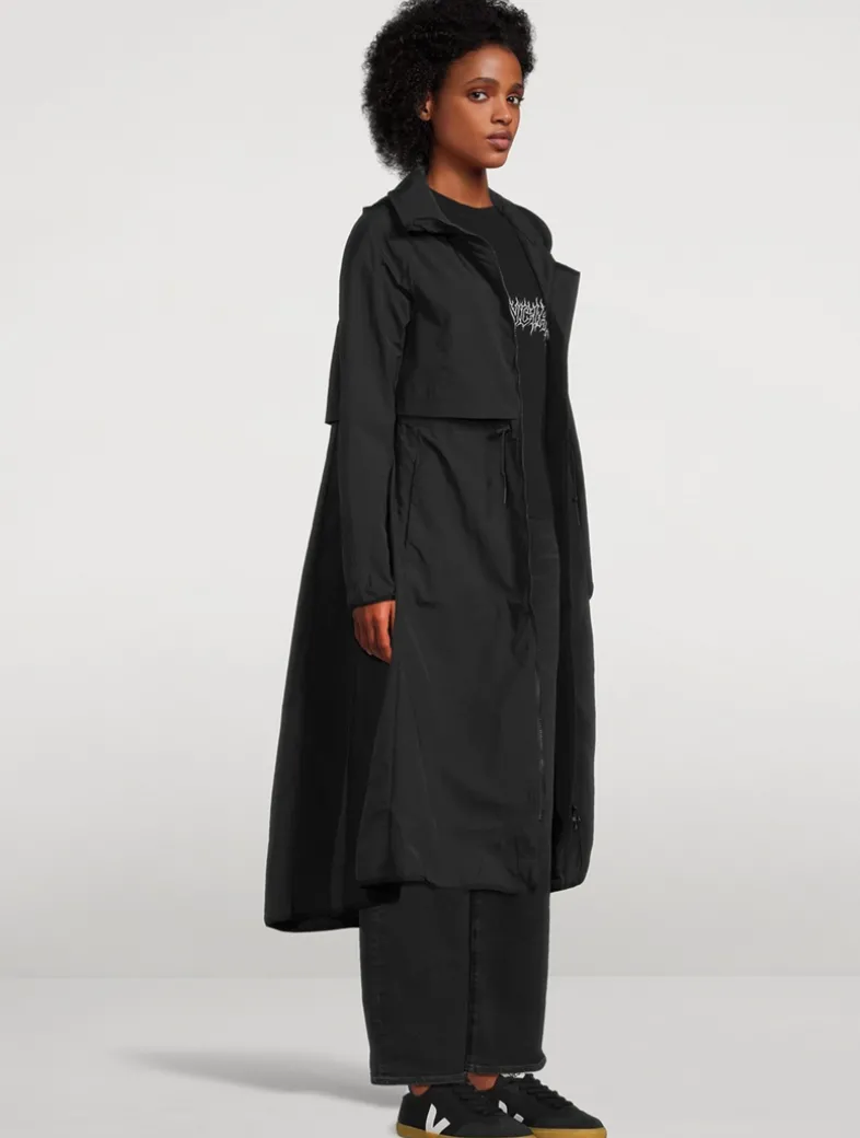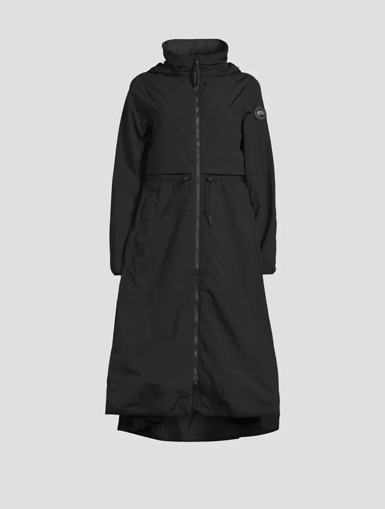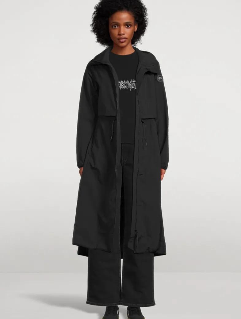Designed for transitional seasons, the Sinclair is made with AcclimaLuxe, a sturdy fabric offering superior wind protection. The topper has an A-line shape with a drawstring at the waist and relaxed shoulders for mobility. A hood is packed away in the collar.