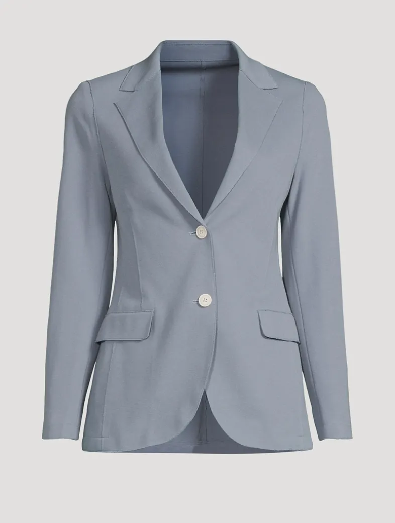 Made in Italy, this blazer is tailored in a slim silhouette. It is designed with a single-breasted button closure, buttoned cuffs, and flap pockets at the waist.