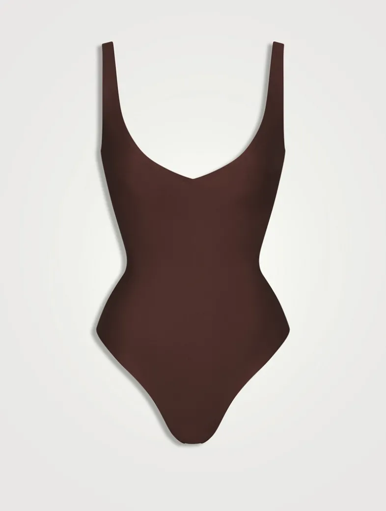 Wear this sexy plunging thong bodysuit alone with your favourite bottoms or under dresses to accentuate your curves and snatch your silhouette. Features unlined cups to flatter your bust, adjustable back straps that you can wear cross back, and a bottom gusset with snap closure. Fits true to size. Size down for more compression.