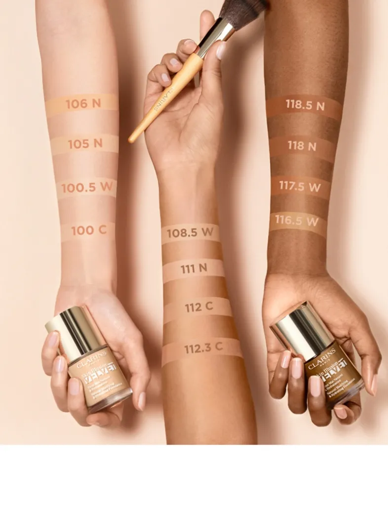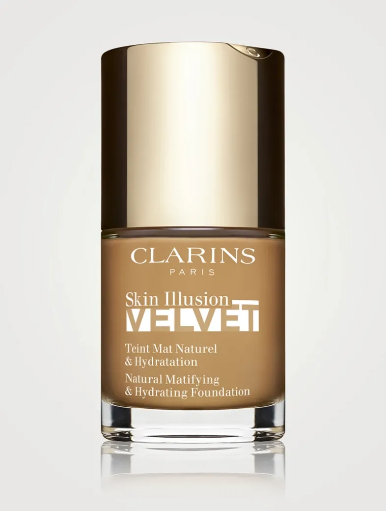 The mattifying liquid foundation that gives a bare skin effect! Just a few drops of Skin Illusion Velvet are all you need to instantly enhance your complexion, control shine and blur imperfections. Its lightweight, silky and comfortable texture leaves an invisible, even matte veil with a barely-there feel. Bursting with skincare ingredients, its formula is a truly nourishing beauty cocktail for the skin. The result: bare skin looks more beautiful day after day. Benefits : Bare skin effect. Mattified complexion. Natural glow. Clarins Anti-Pollution Complex.