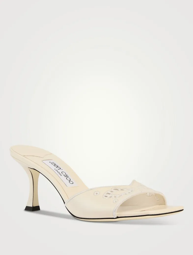 Crafted from leather with dainty embroidery detailing, the Skye sandal is an effortlessly elegant style. Its modern silhouette features a low-cut vamp with a square toe and a graphic curved heel.