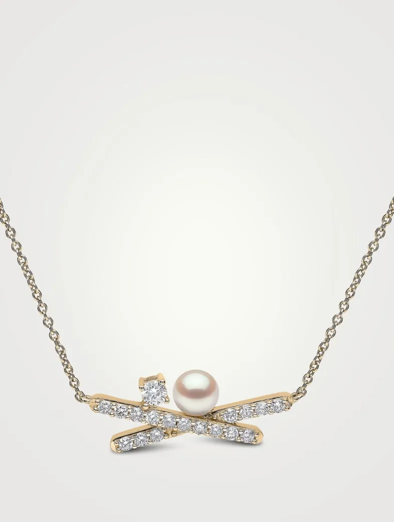 Part of the Sleek collection, this necklace exudes creativity and confidence. The intricate design features a luminous Akoya pearl in the centre of a scintillating diamond cross.