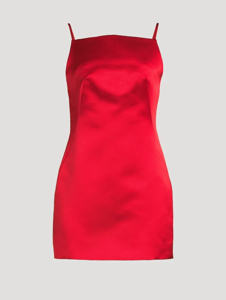 Cut to a curve-hugging silhouette, this slinky dress is designed with a high square neckline framed by slim straps. It is crafted from silk with a glossy satin sheen.
