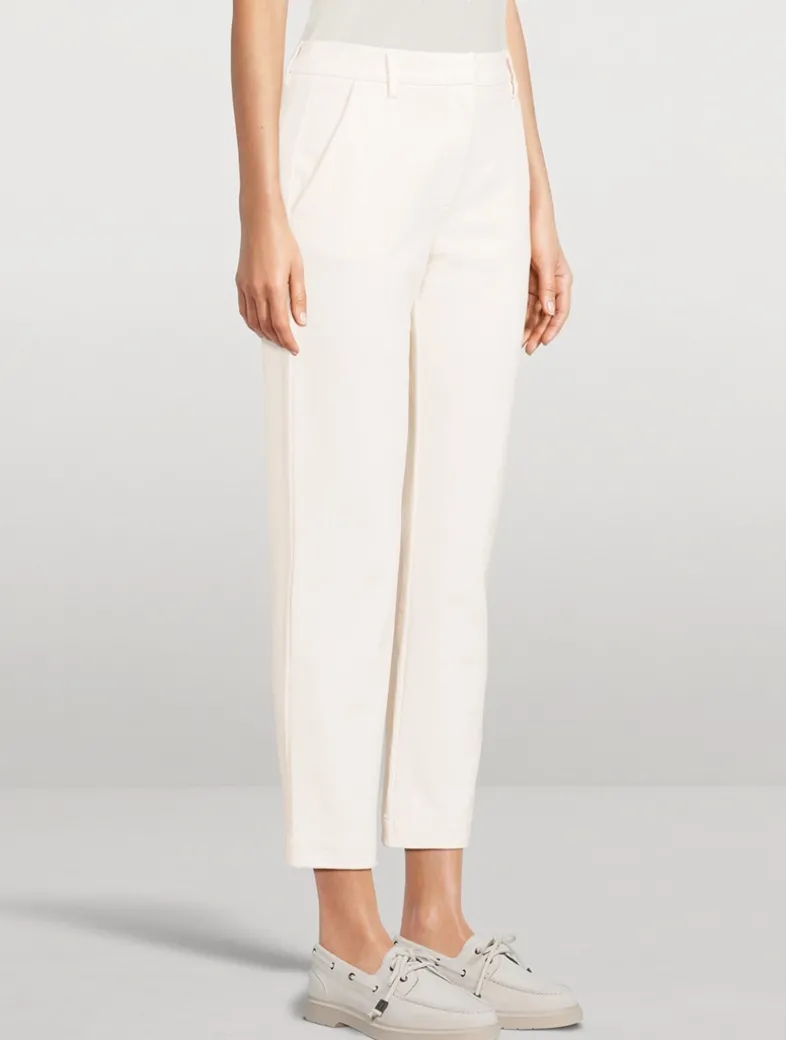 Made from cotton with a hint of stretch, these pants have a slim-leg design topped by a waistband with belt loops. The ankle-length pair are complete with side slip pockets and welt pockets at the rear.