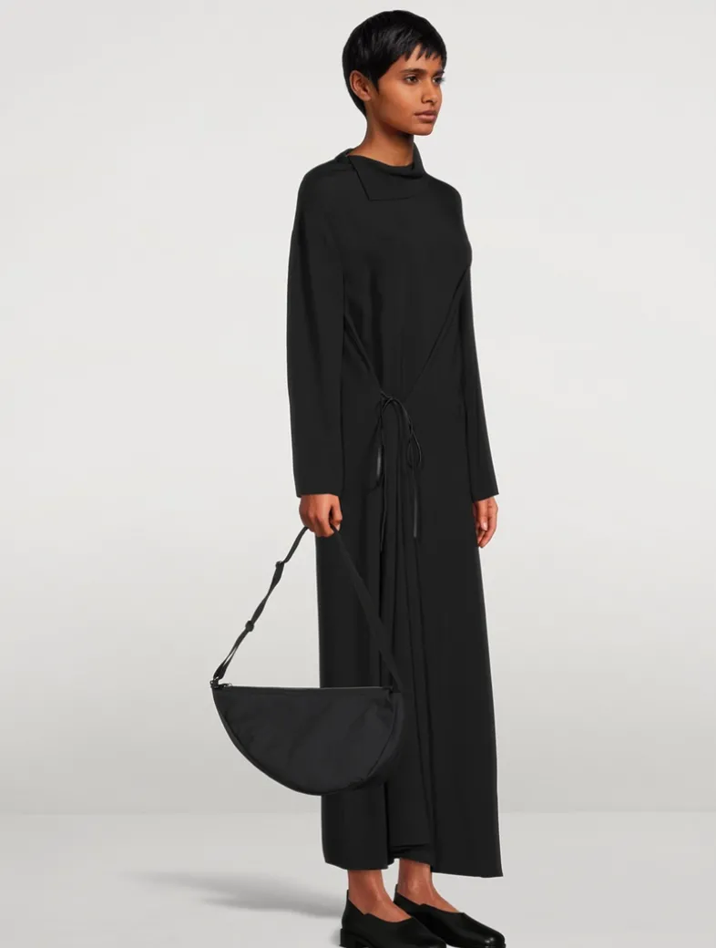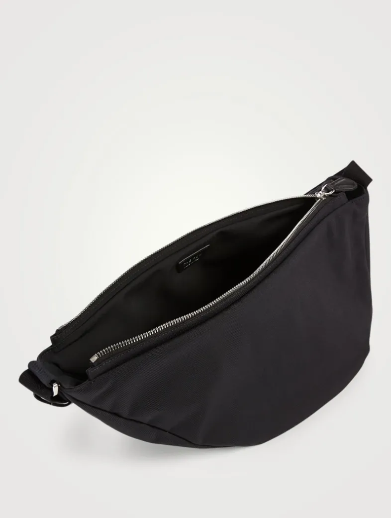 A utilitarian update to The Row’s classic sling-style bag, this version is crafted of durable nylon with rich leather trim. It is designed in a curved shape, and features an adjustable shoulder strap for crossbody wear.