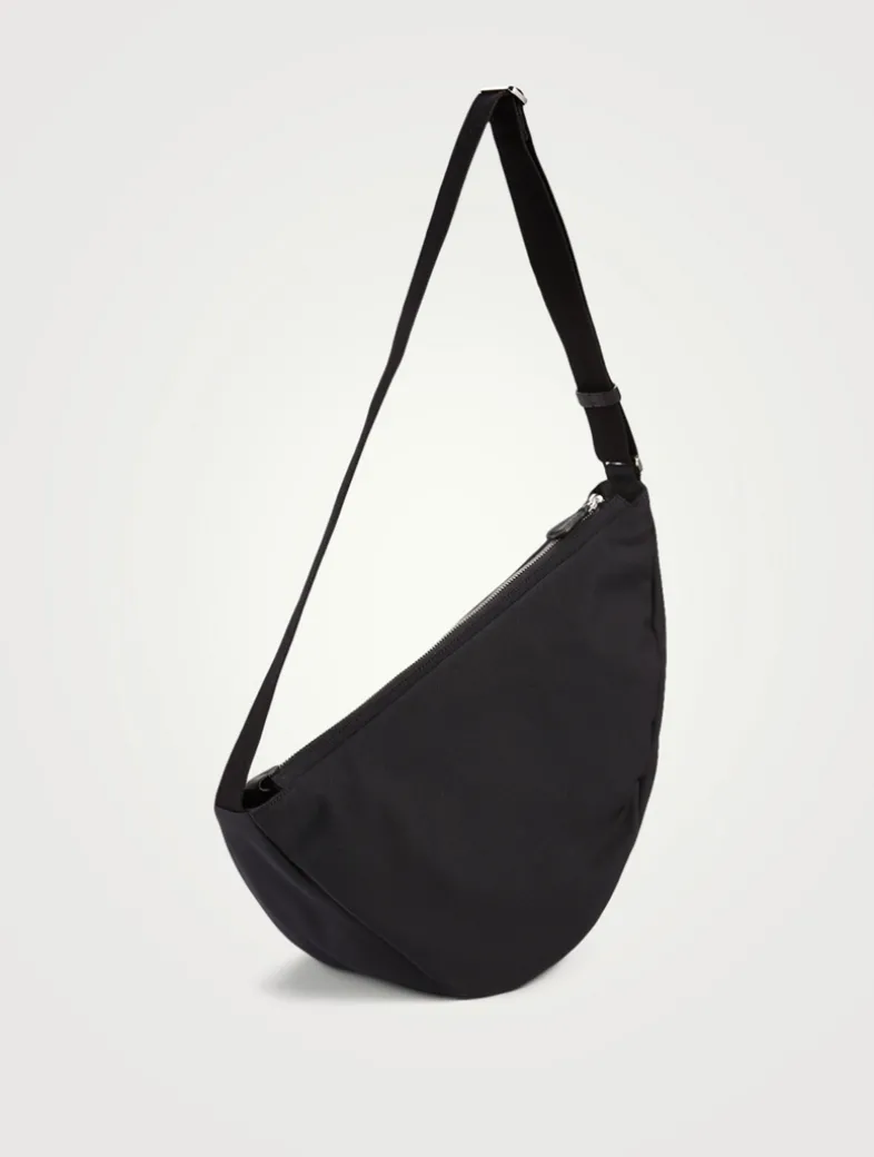 A utilitarian update to The Row’s classic sling-style bag, this version is crafted of durable nylon with rich leather trim. It is designed in a curved shape, and features an adjustable shoulder strap for crossbody wear.