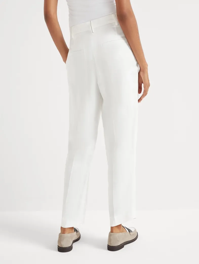 Viscose and linen fluid twill slouchy trousers with monili
