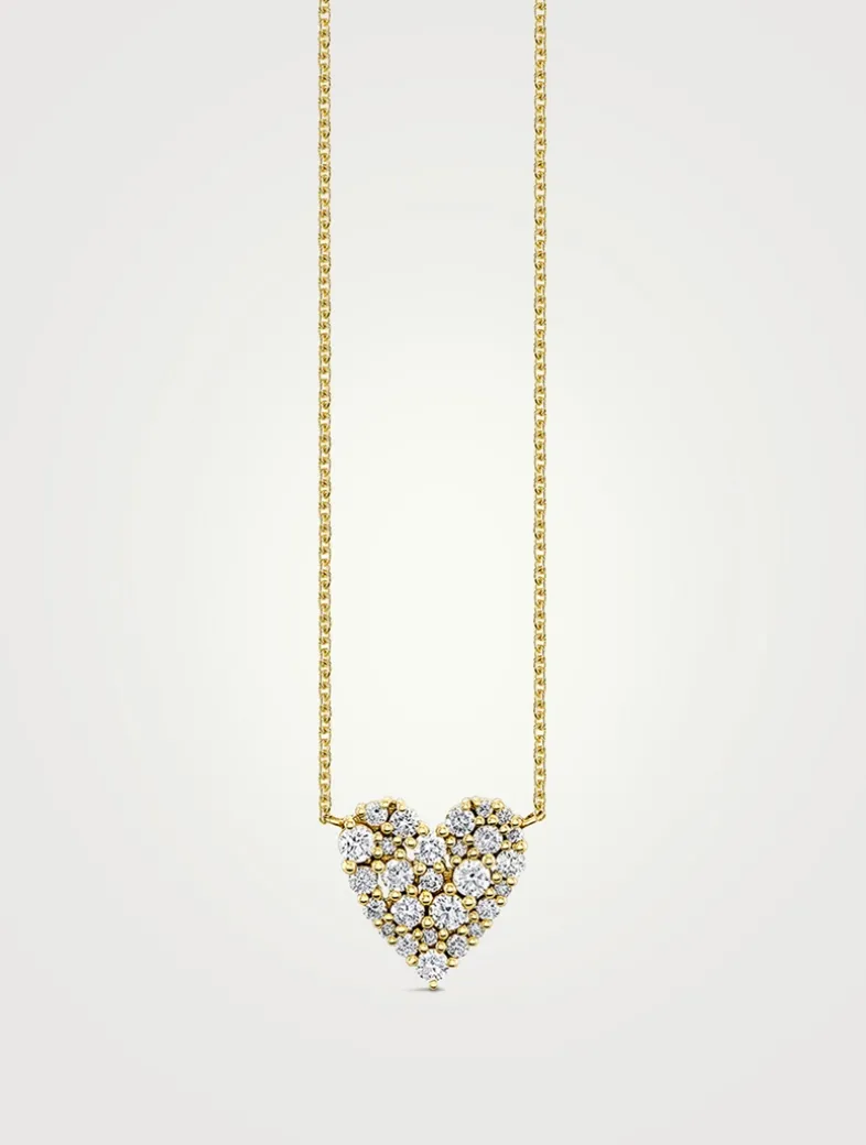 A symbol of love and affection, this elegant 14k gold necklace features a cocktail heart fixed along a delicate chain, sparkling with prong-set diamonds.