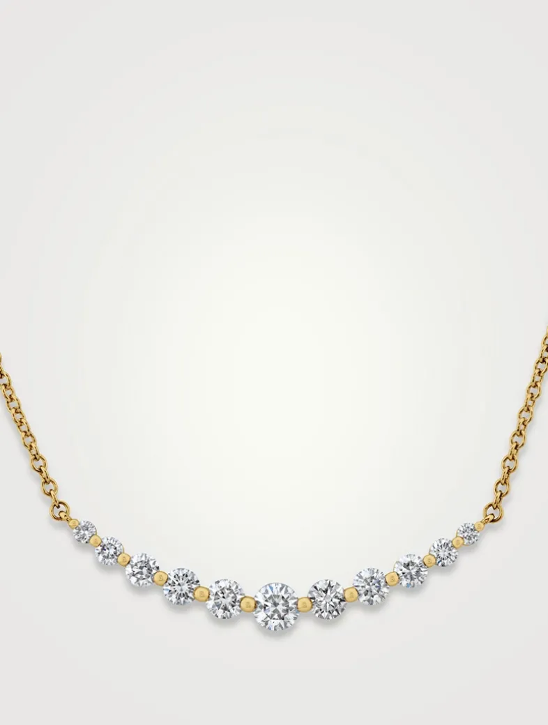 This adjustable chain necklace features graduating diamonds in sleek prong settings.