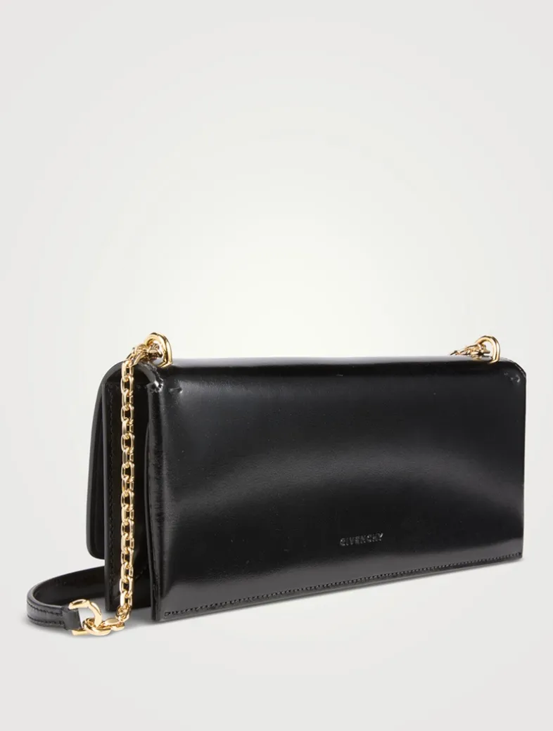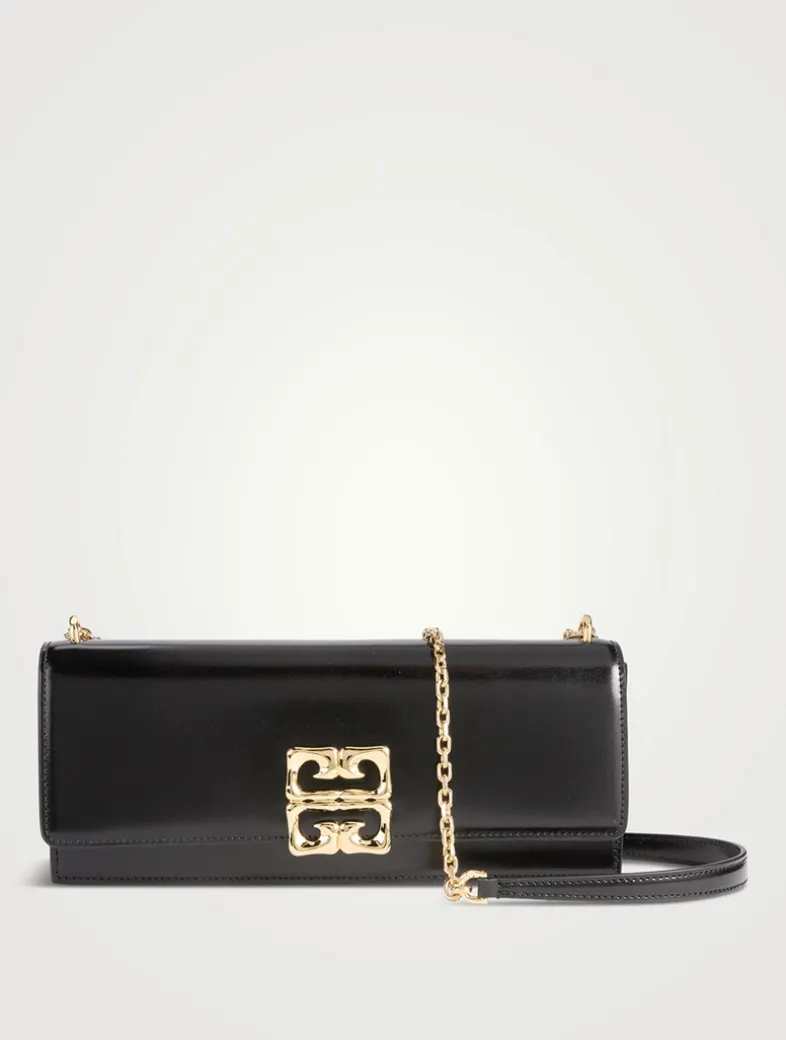 This long clutch in box leather has one main compartment with one card slot inside. It has an adjustable chain so it can be worn on the shoulder or across the body. Embellished with 4G Liquid hardware on the flap.