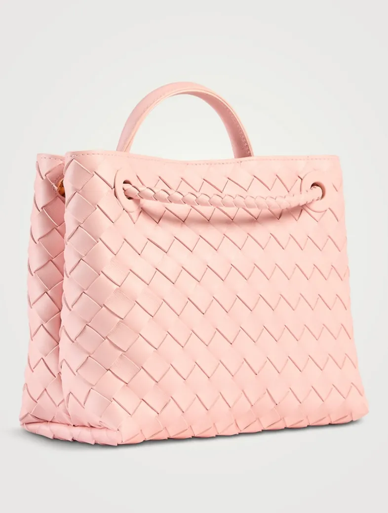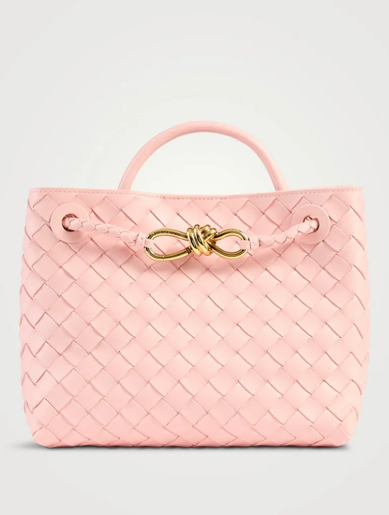 This Intrecciato leather top handle bag is designed with a sliding crossbody strap. Its compartmented interior has one zipped pocket and two open pockets. Bottega’s signature knotted metal hardware completes the look.