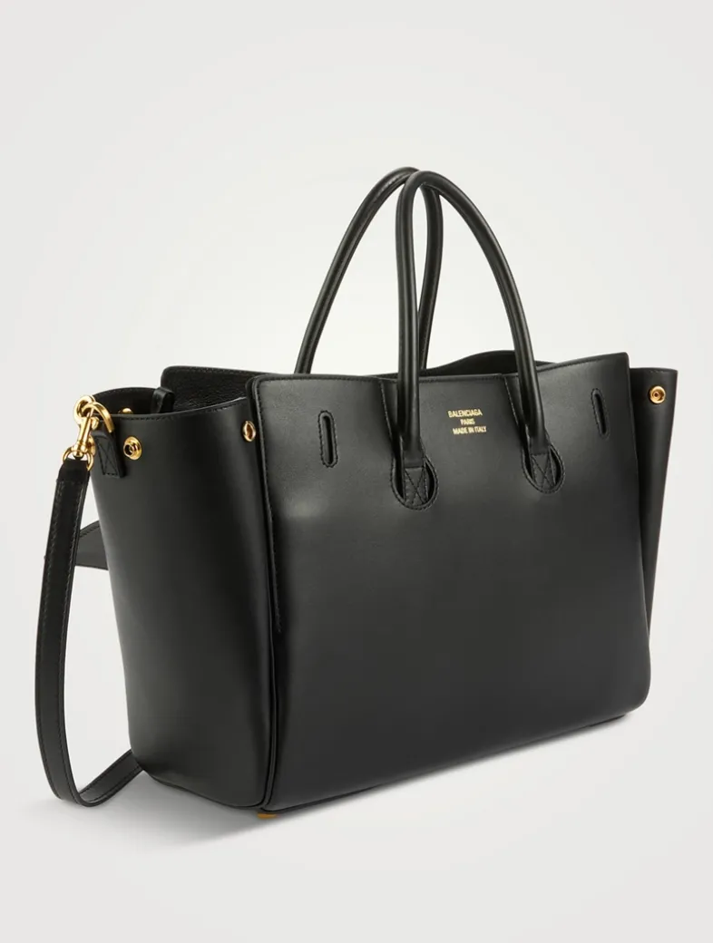 A slouchy design lends a louche touch to this roomy carryall. Crafted in Italy from smooth calfskin, it is embellished with aged gold-tone hardware. It has snaps at the sides to adjust the shape of the main compartment, while the interior has two zipped pockets and two flat pockets.