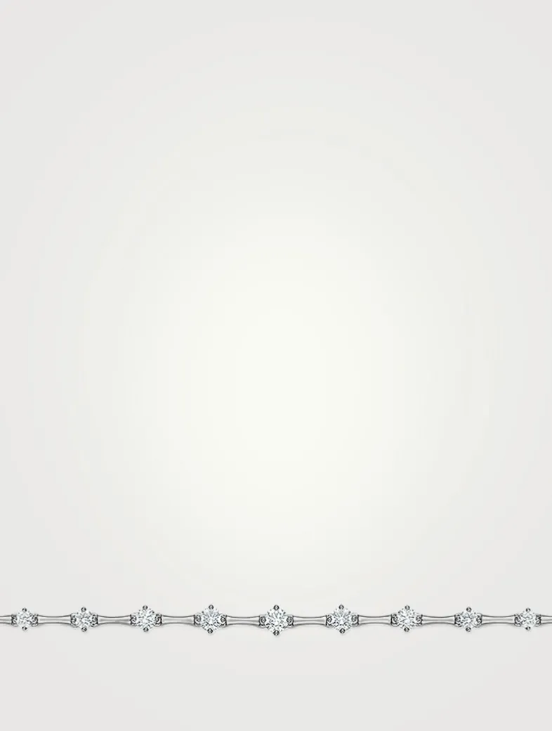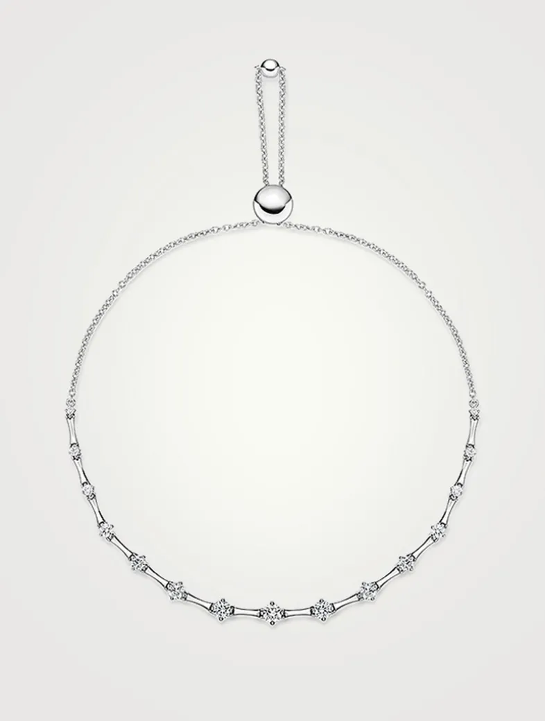 Crafted in 18K gold, this dainty bolo bracelet is exquisitely prong set with graduating diamonds for a timeless and minimalist charm.