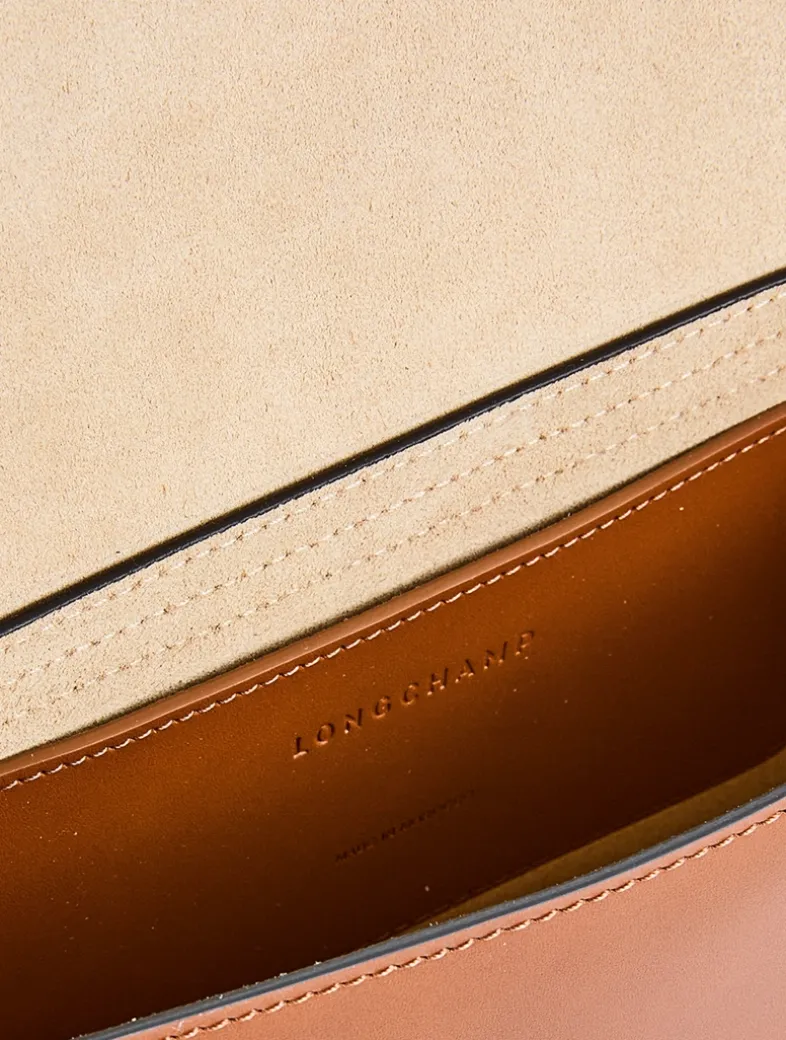 This crossbody bag embodies the timeless elegance of Longchamp’s leather craftsmanship. Crafted from smooth calfskin for a sleek, ultra-minimalist look, it features a flap closure adorned with Longchamp’s iconic snap button. The wide strap, accented with leather inserts, introduces a touch of sport-chic flair to the design.