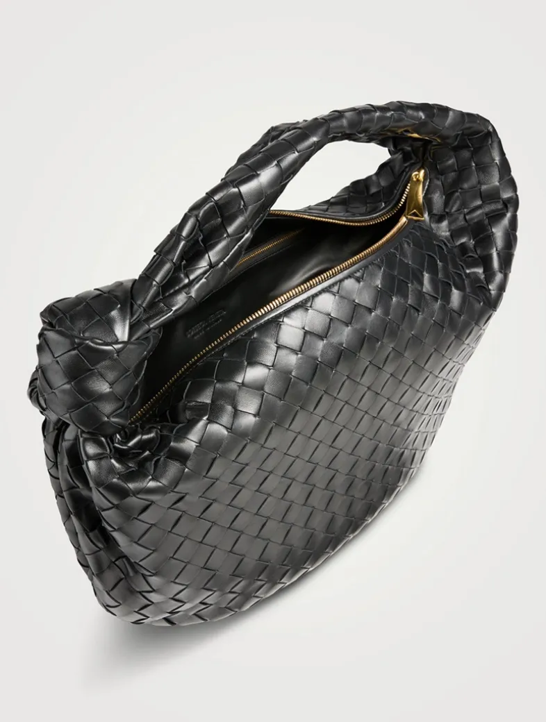 Crafted in Bottega Veneta’s iconic intrecciato weave, this slouchy bag features an effortlessly knotted handle and buttery-soft leather construction. It has a zippered closure concealing a single interior compartment with a zippered pocket.