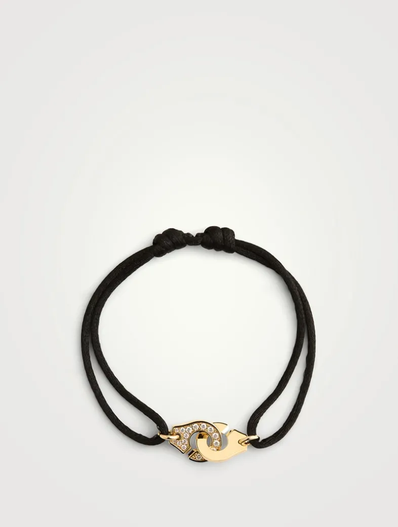 Small Menottes Dinh Van Cord Bracelet With 18K Gold And Diamonds
