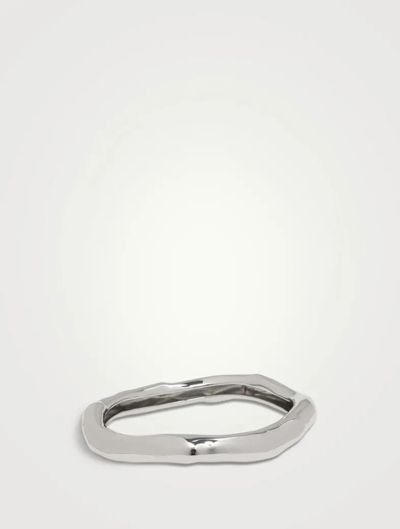 The signature Alexis Bittar domed bangle style is updated with molten high shine silver tone plated metalwork and a versatile smaller size. The bracelet is designed for a comfort fit, with a soft curvature on the interior rim making it easy to slide on and off.