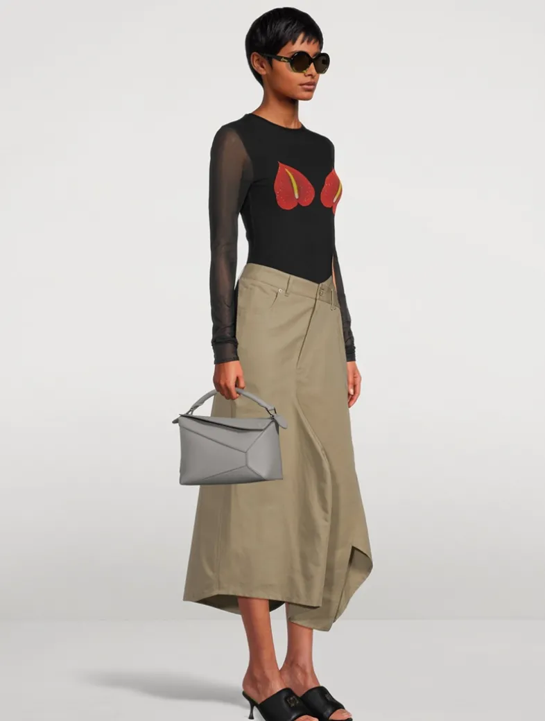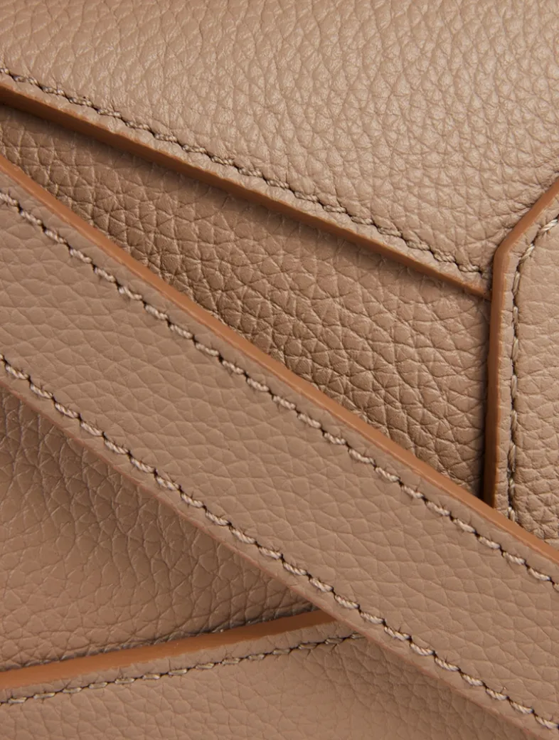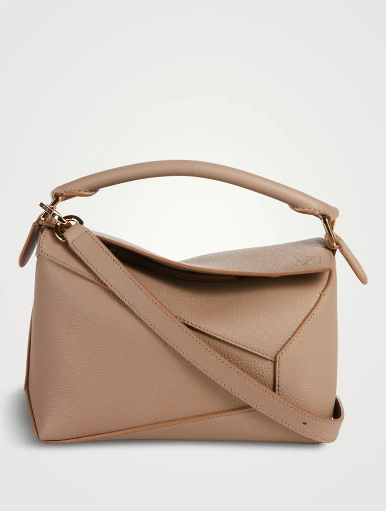 The Puzzle bag is the debut bag for Loewe by Creative Director Jonathan Anderson. A cuboid shape and precise cutting technique create Puzzle’s distinctive geometric lines. This version is crafted in buttery leather with a detachable and adjustable strap for shoulder, crossbody, top handle or clutch carry.