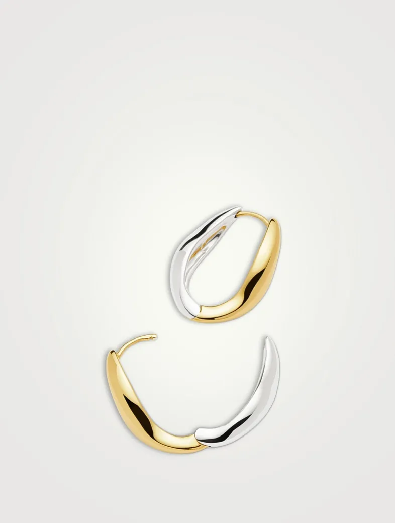 These signature Savi ‘S’ shaped small hoops in mixed metals can be worn with either silver or gold side facing forward, giving you two pairs of hoops in one. Style solo or pair with studs for an instant ear stack.