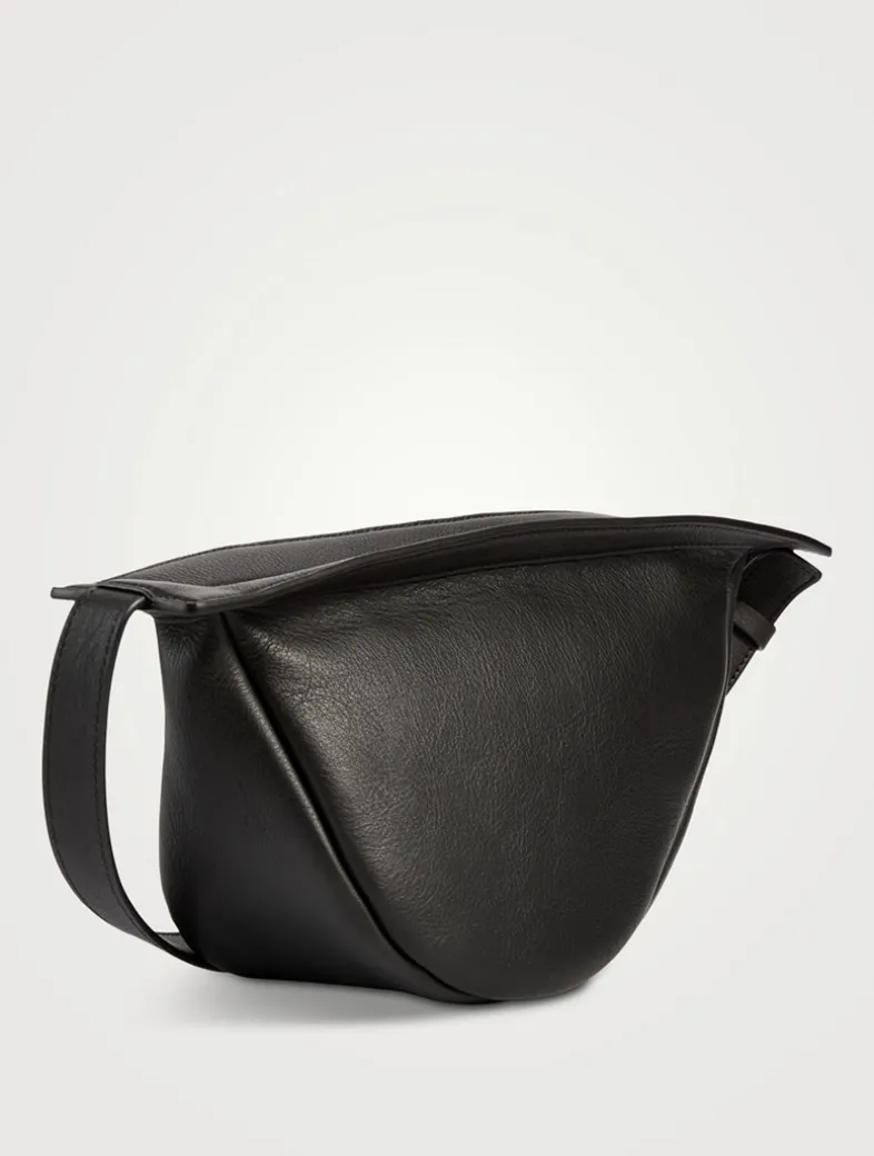 Designed in a curved shape, this spacious bag features an adjustable shoulder strap for crossbody wear. It is crafted of buttery-soft Italian leather with a rich suede lining.